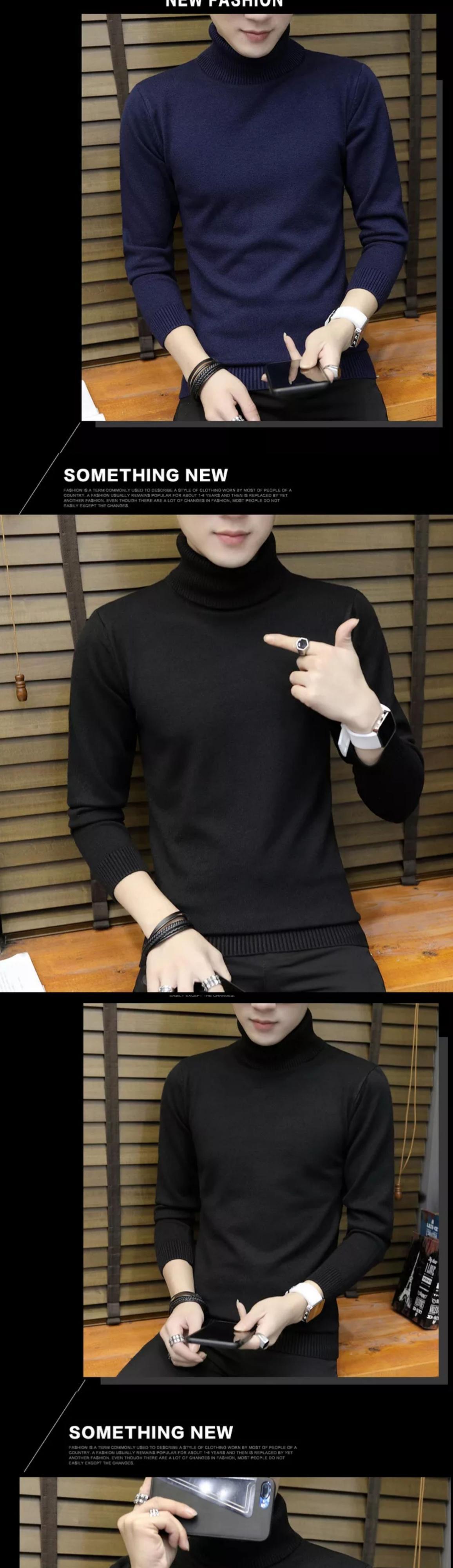 Winter Men's Turtleneck Sweater Slim Solid Color Knit Sweater Lapel Thickening Plus Fleece Bottoming Shirt Men's Sweater Trend ウィンター 冬物 スリム ソリッドカラー doushi65064966993