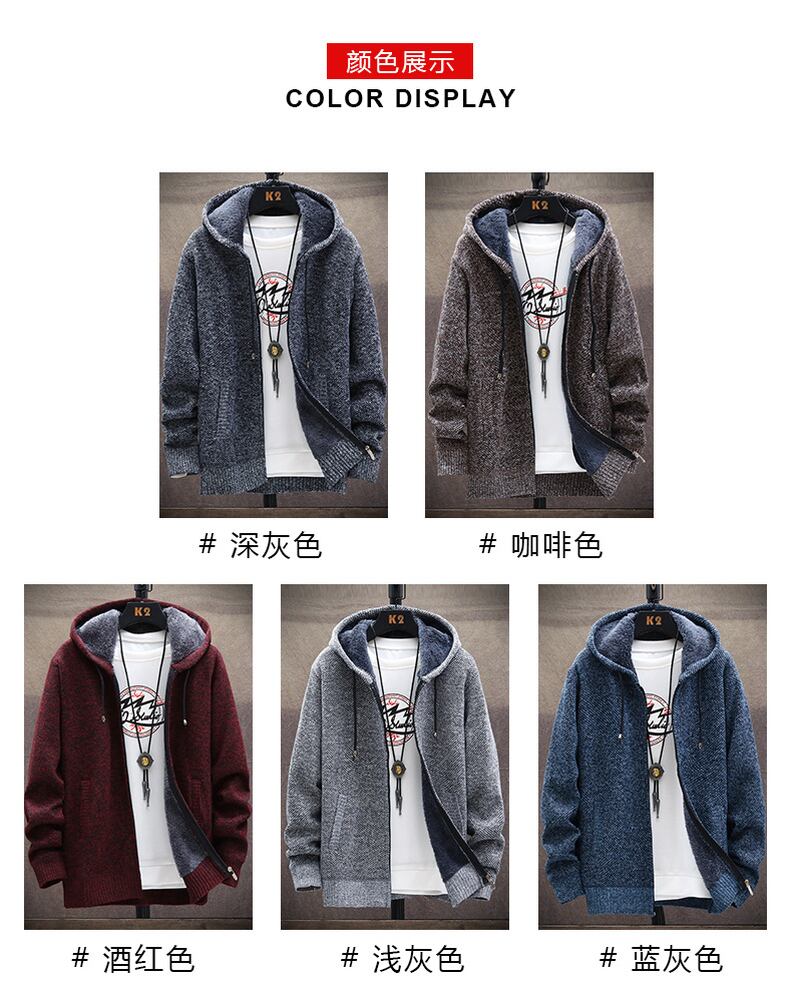 Spring and autumn fleece thickened men's jacket new sweater version slim trend top youth knitted jacket スプリング 春物 オータム 秋物 スリム doushi2097902734