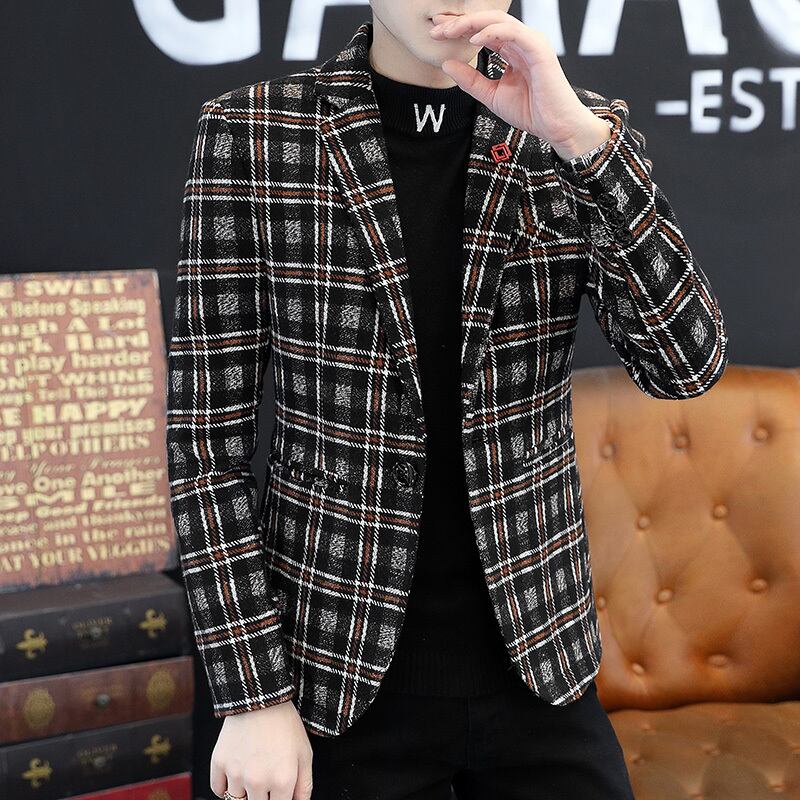 Spring and autumn thin small suit men's version of the trend of self-cultivation youth handsome business casual plaid suit jacket カジュアル スプリング 春物 オータム 秋物 doushi4616500712