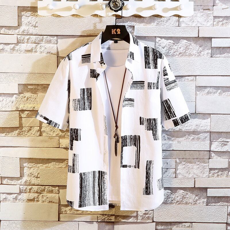 Summer plaid shirt men's short-sleeved student loose version trendy handsome ins jacket couple casual shirt カジュアル サマー 夏物 doushi75141143045