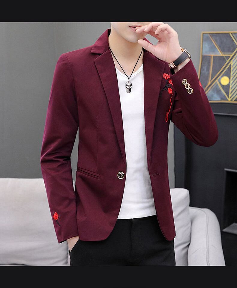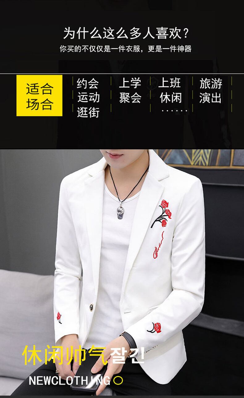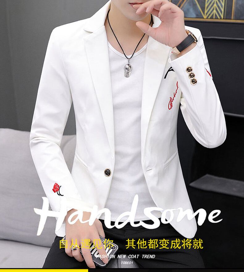 Spring small suit men's new embroidered top casual fleece jacket version slim one-piece white suit ホワイト レッド カジュアル 刺繍 スプリング 春物 スリム doushi53911661818