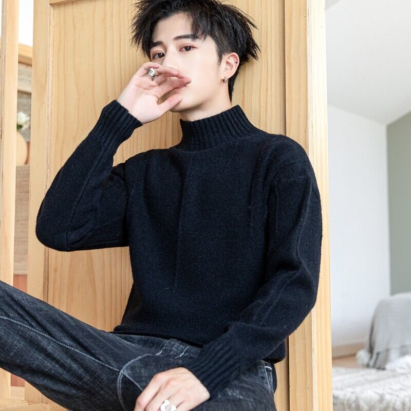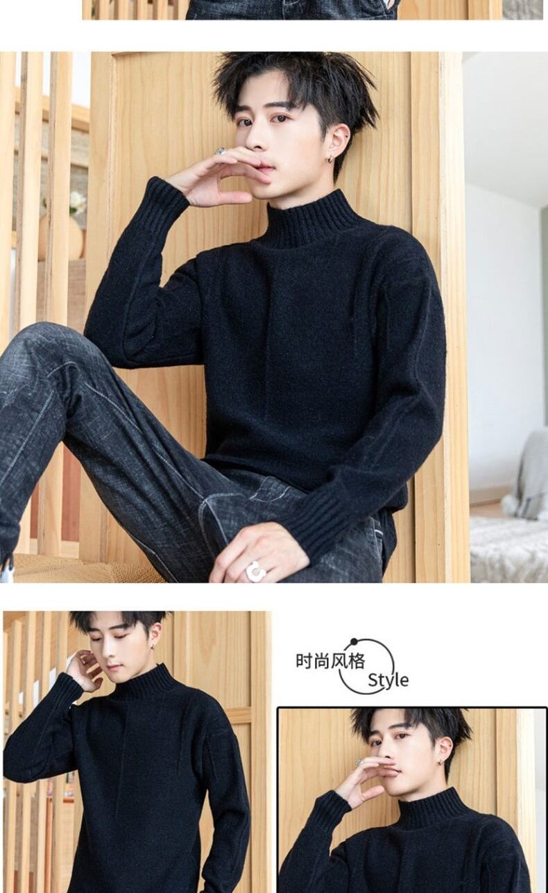 Solid color half turtleneck sweater men's autumn and winter 2022 version trend knitted sweater thickened spring and autumn warm bottoming shirt スプリング 春物 オータム 秋物 ウィンター 冬物 ソリッドカラー doushi95444769067