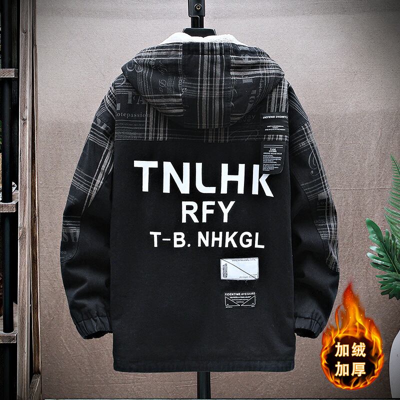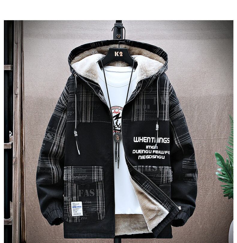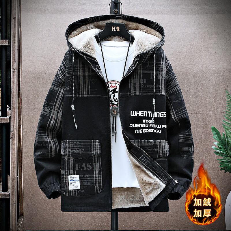 2022 new winter denim jacket men's plus velvet thickening ins tide brand loose jacket men's youth cotton coat コットン ウィンター 冬物 doushi37312691923