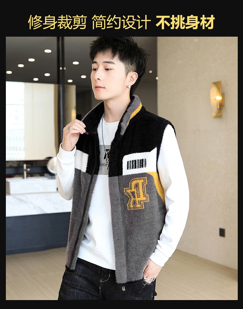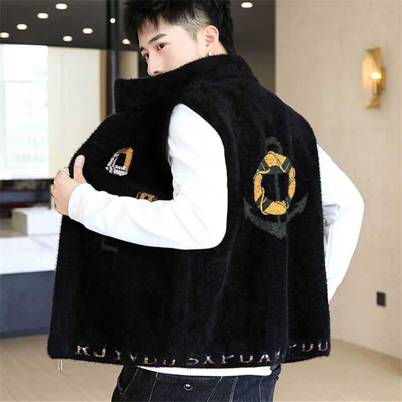 Imitation mink vest men's sleeveless jacket spring and autumn trend handsome warm vest plush vest youth vest スプリング 春物 オータム 秋物 ノースリーブ doushi54428190394