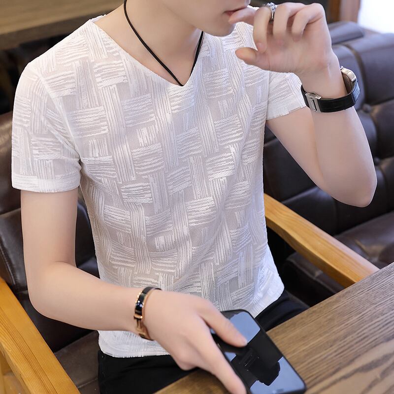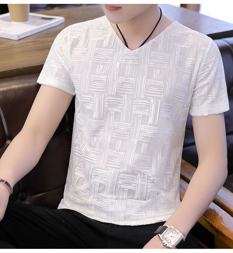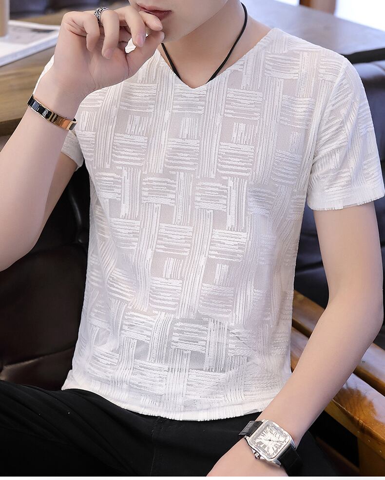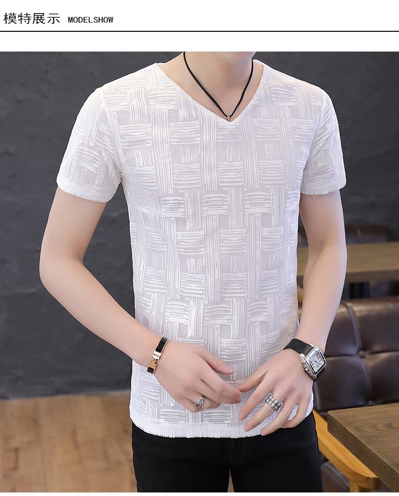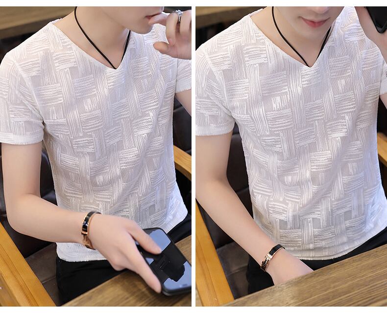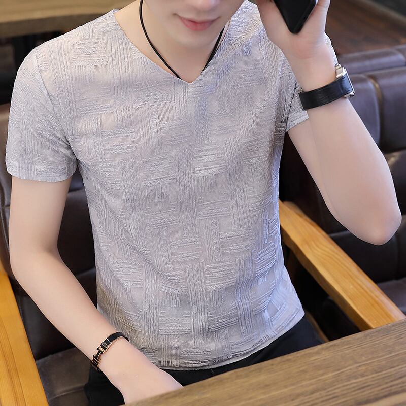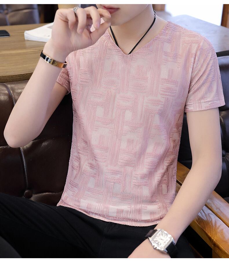 Men's 2022 Short Sleeve T-Shirt Men's Trend Summer Ice Silk Half Sleeve V-Neck Slim Quick-Drying Body Clothes ショート 半袖 ハーフスリーブ サマー 夏物 Vネック スリム シルク Tシャツ doushi59232745275