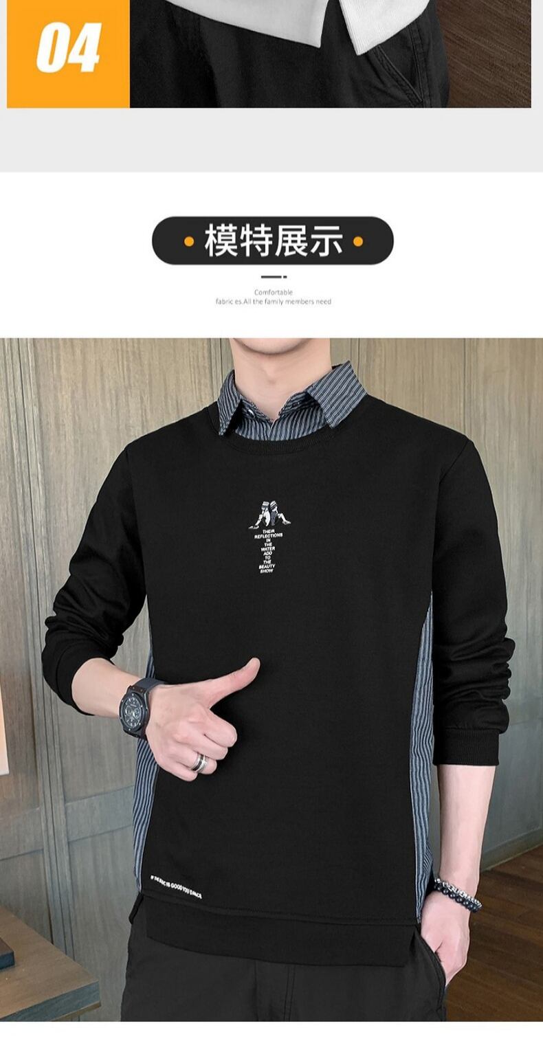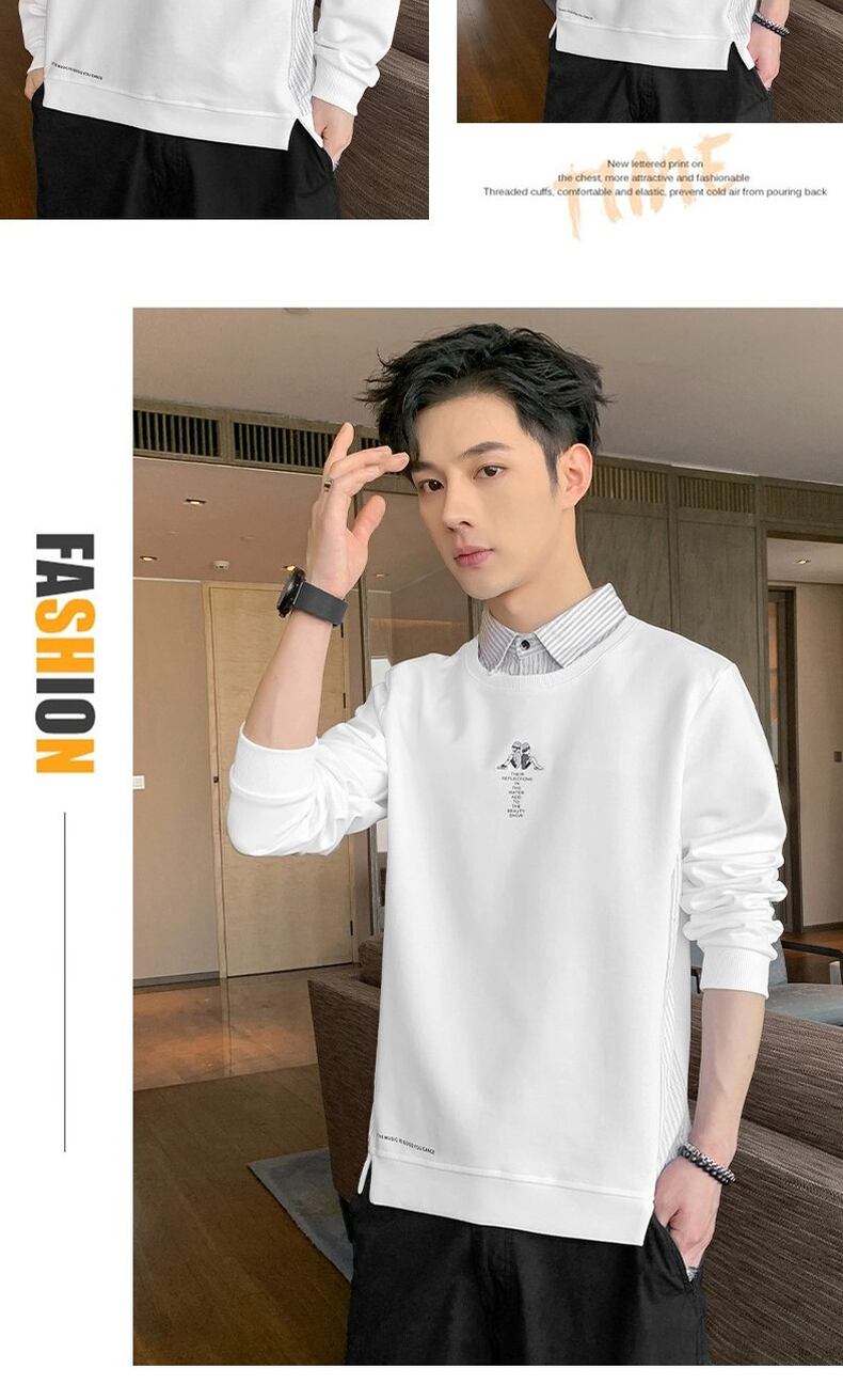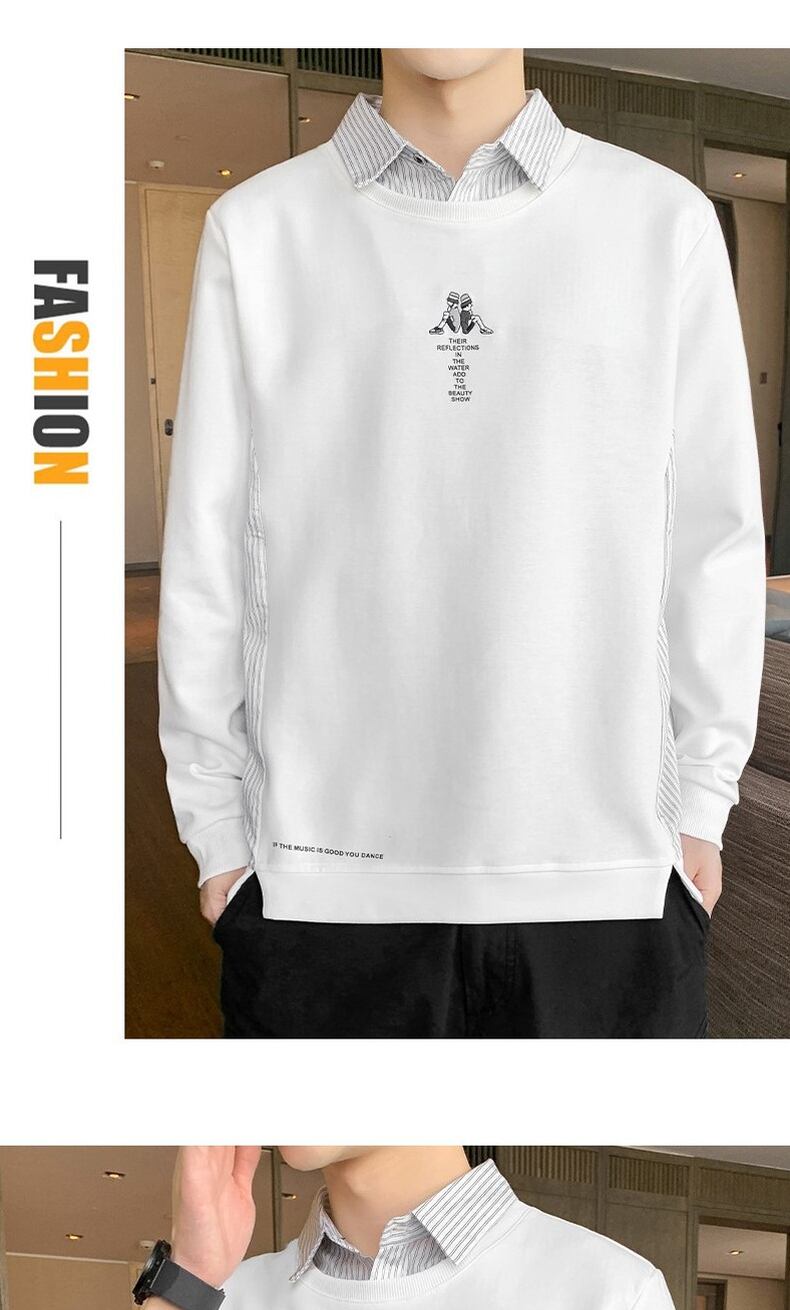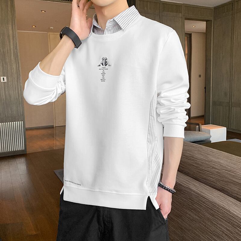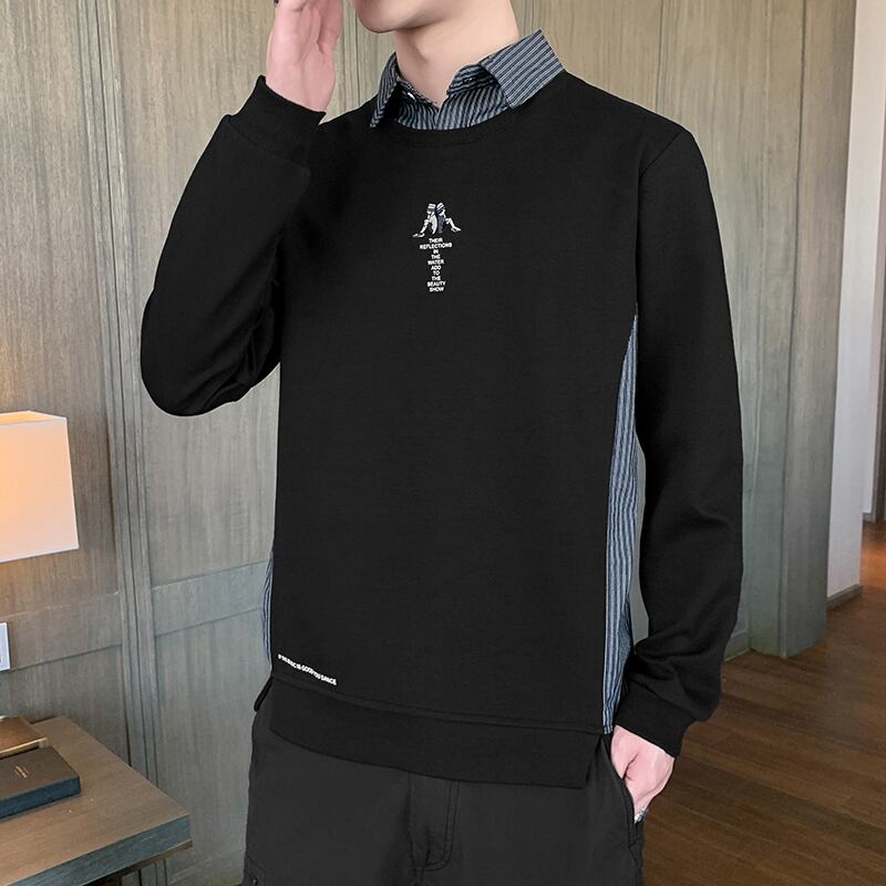 Fake two-piece sweater men's spring and autumn new trend loose shirt collar autumn shirt tide brand ins long-sleeved t-shirt ロング スプリング 春物 オータム 秋物 Tシャツ doushi48095792008