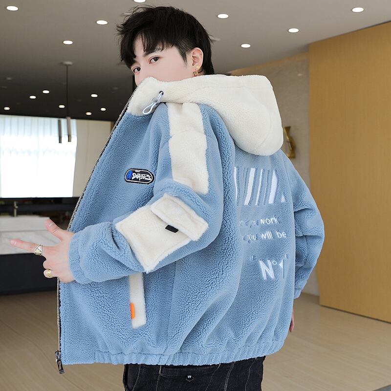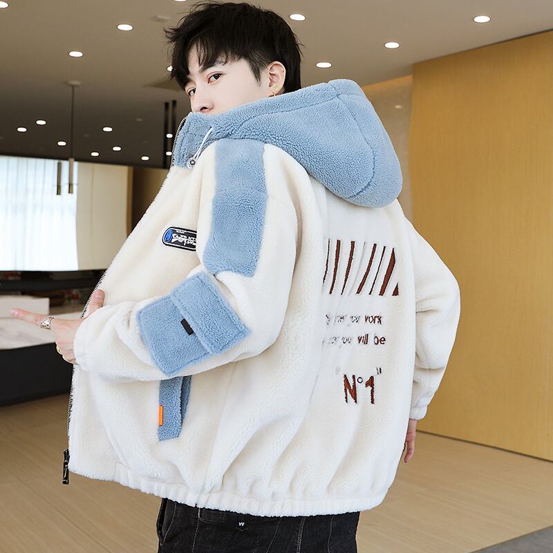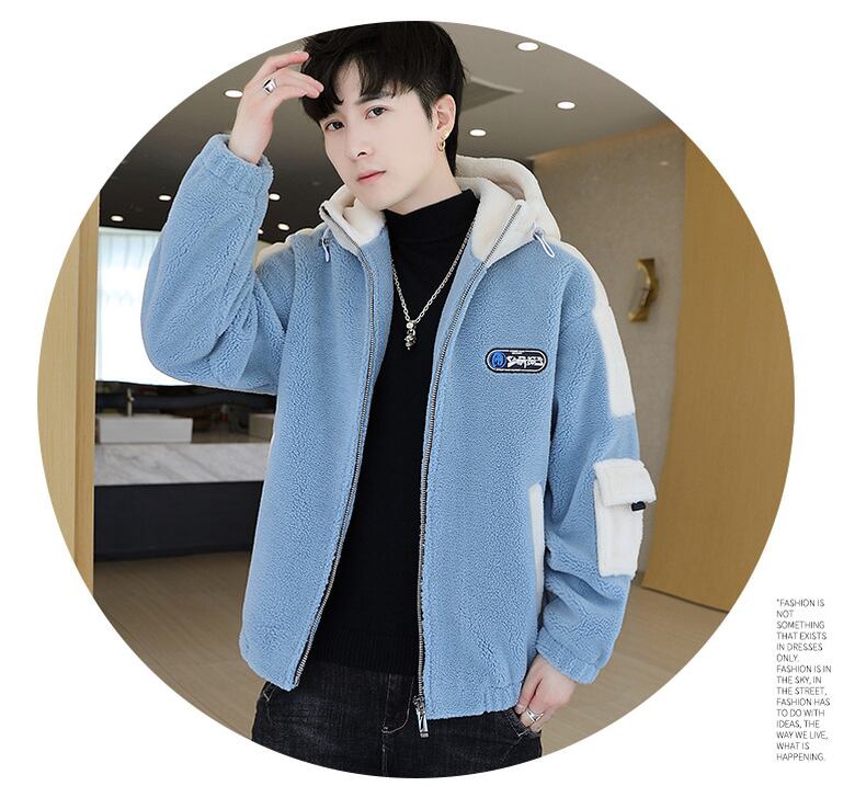 Men's grain fleece jacket autumn and winter 2022 new colorblock hooded tooling lamb wool jacket trendy clothes オータム 秋物 ウィンター 冬物 doushi84493731103