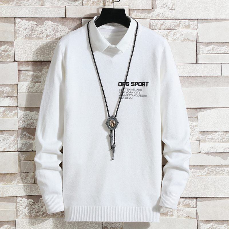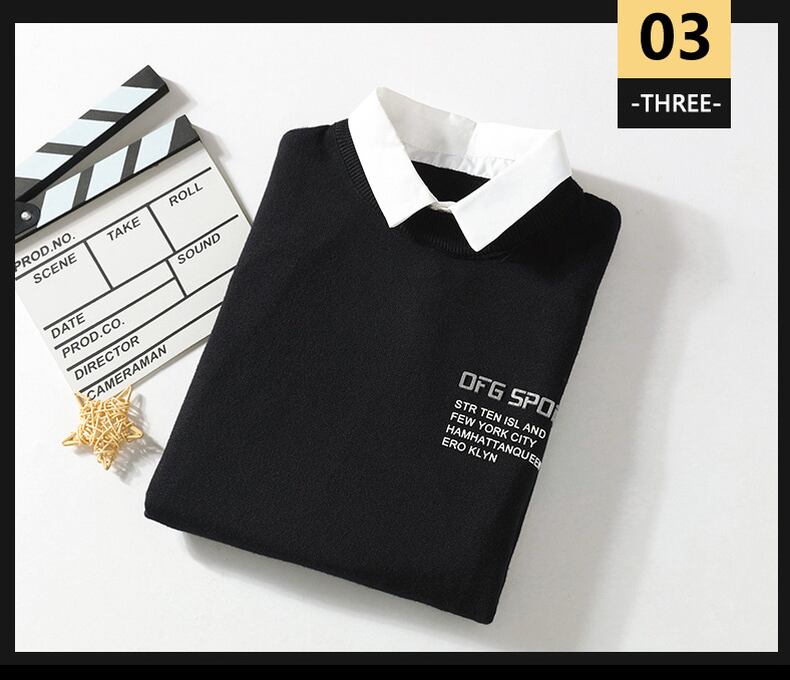 2022 autumn and winter vacation two-piece sweater men's shirt collar knitted sweater plus velvet thick fake collar trend warm and lead オータム 秋物 ウィンター 冬物 doushi2383853223