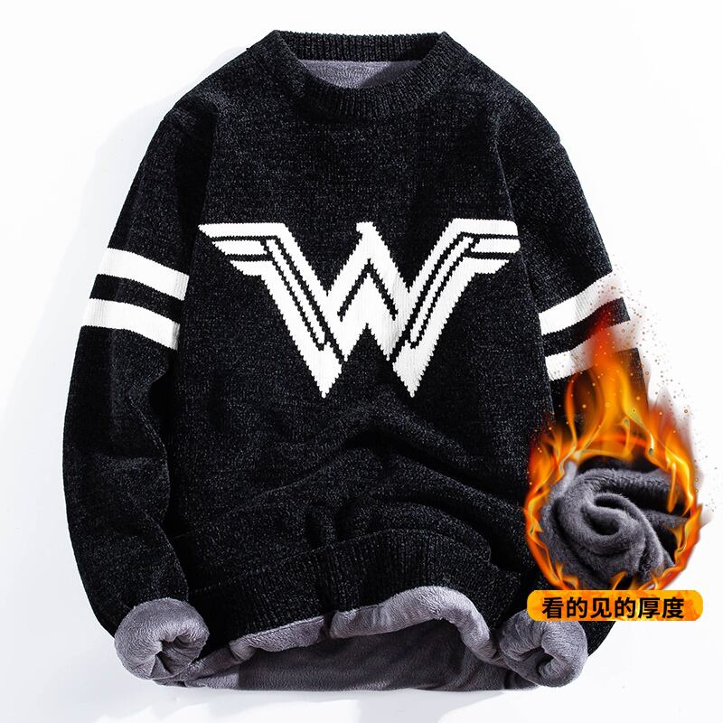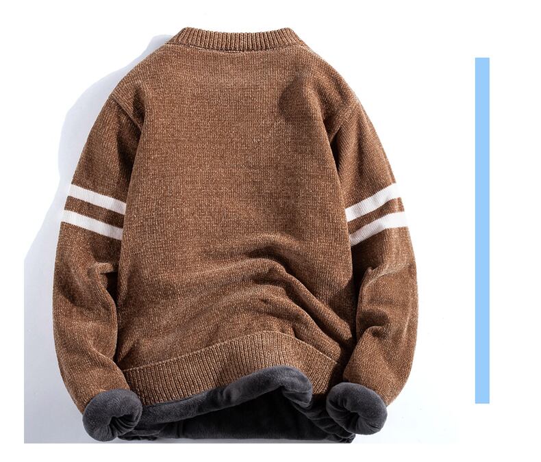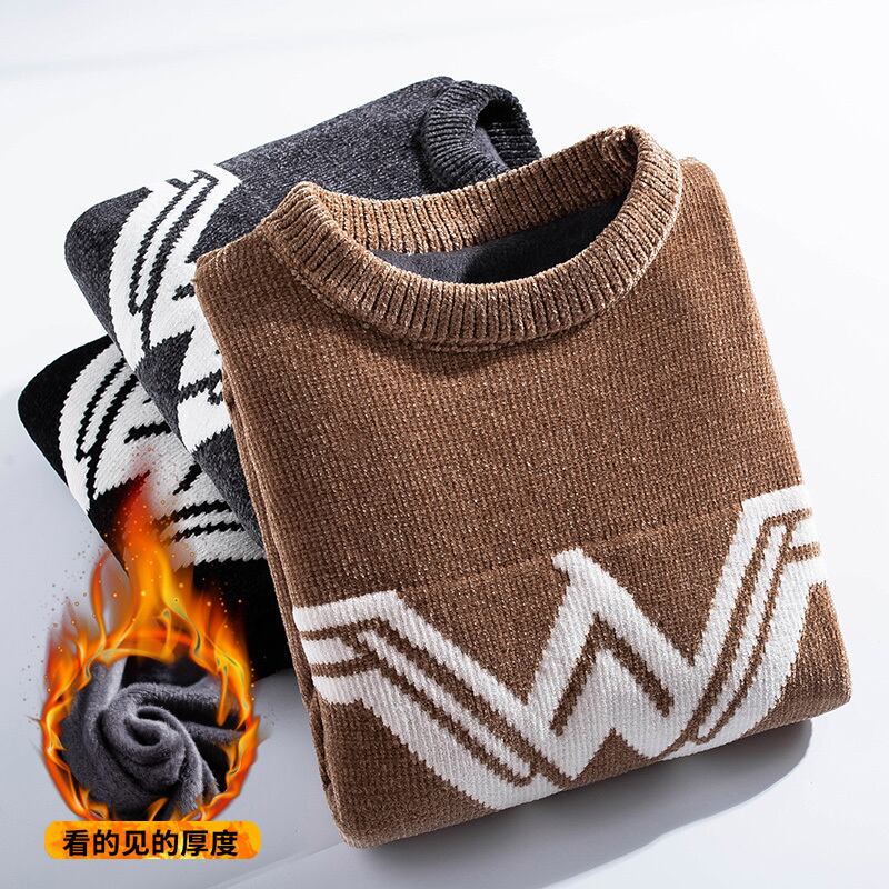 All-in-one velvet chenille warm sweater men's top plus velvet thick winter low-neck bottoming shirt round neck sweater ウィンター 冬物 Oネック doushi37365305107