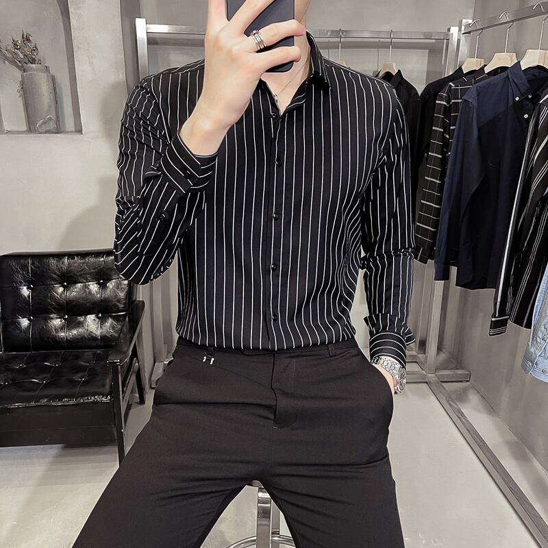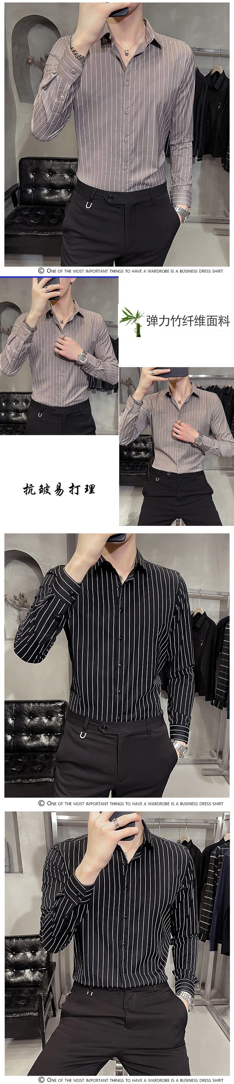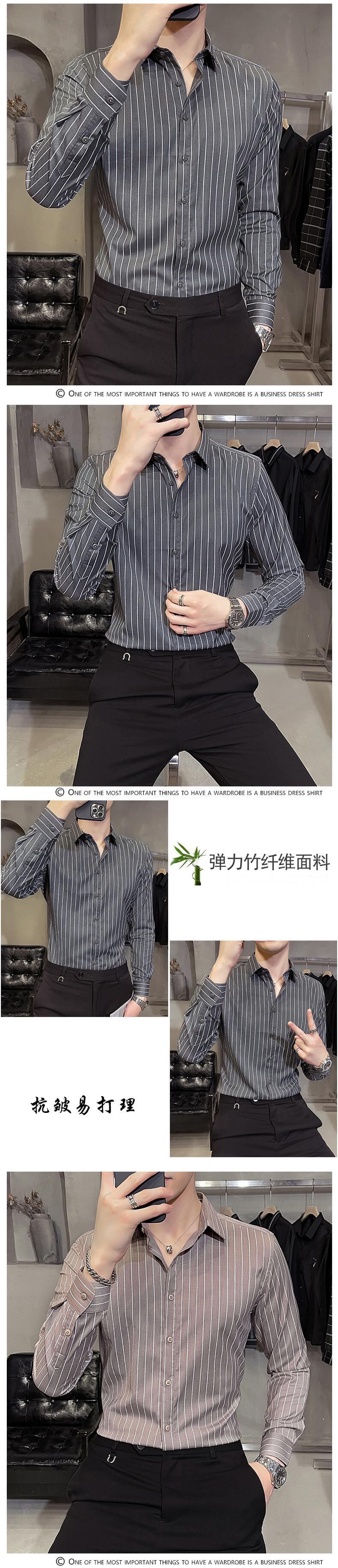 Shirt Men's Long Sleeve Business Shirt Spring Gray Striped Version Slim Fit Non-iron Inch Shirt Trendy and Handsome ロング 長袖 スプリング 春物 ストライプ スリム doushi80103791511