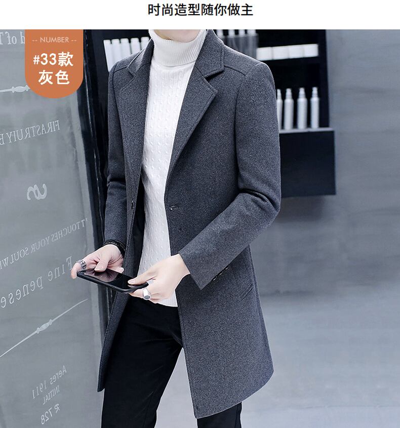 Men's windbreaker autumn and winter mid-length woolen coat thickened woolen woolen coat 2022 new men's clothing trend オータム 秋物 ウィンター 冬物 doushi34490180645