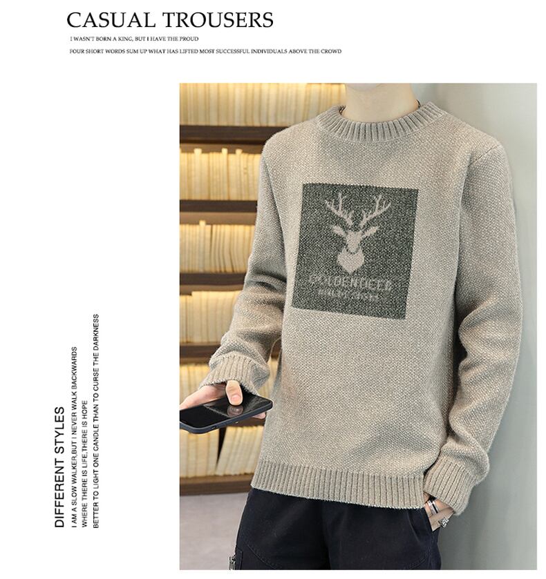 2022 new autumn and winter men's round neck chenille sweater men's version trend plus velvet thick knitted bottoming shirt オータム 秋物 ウィンター 冬物 Oネック doushi94182334254