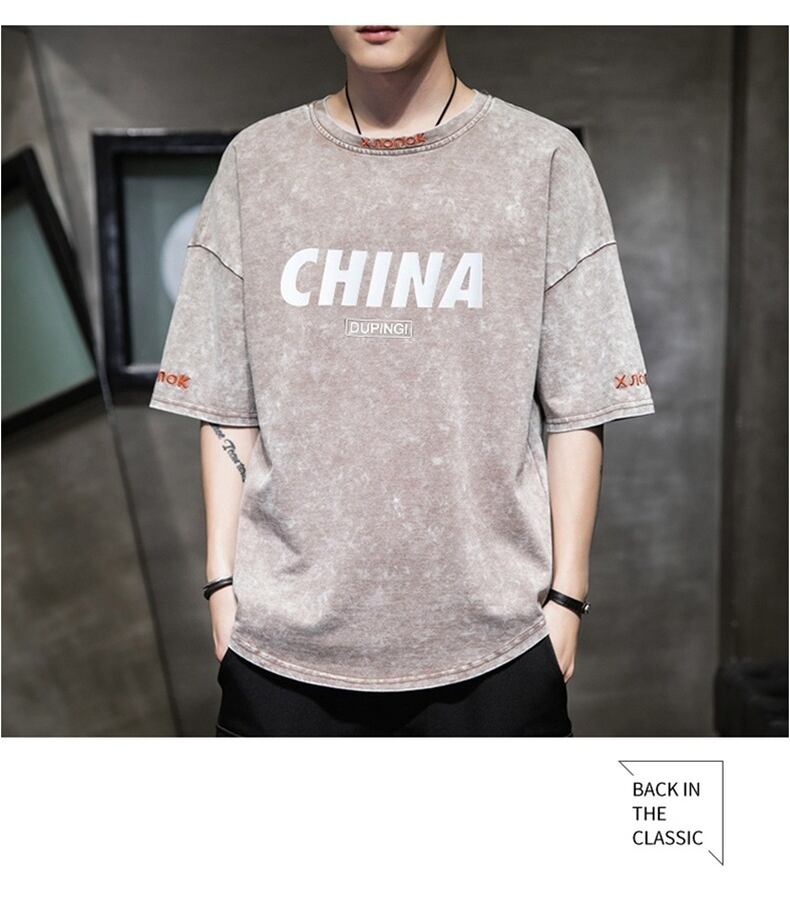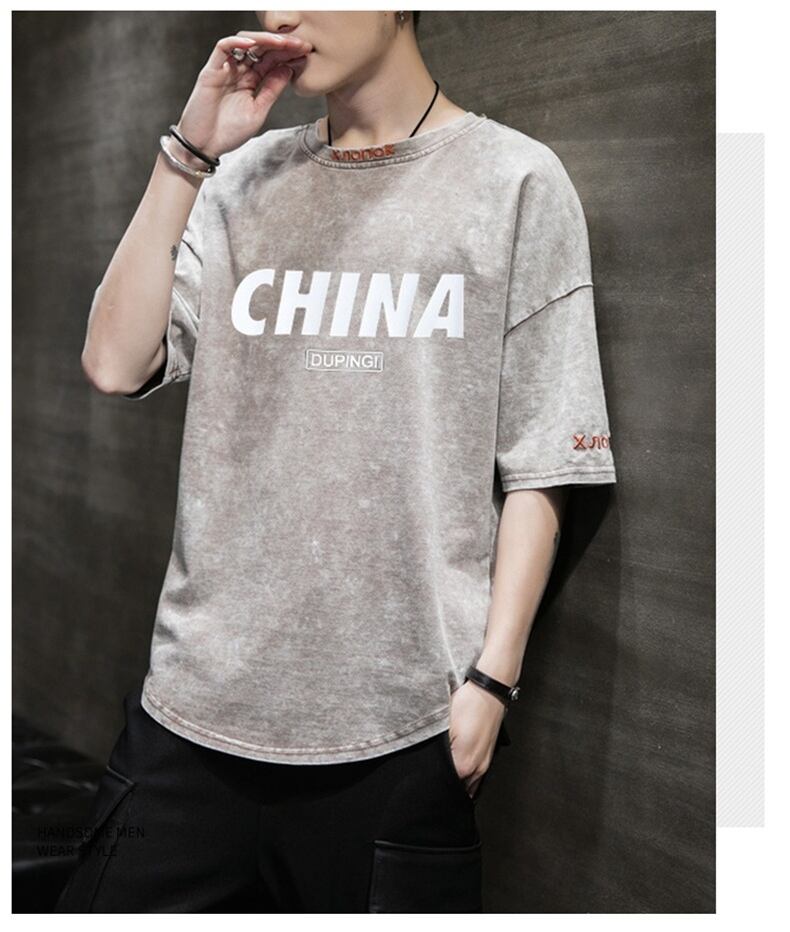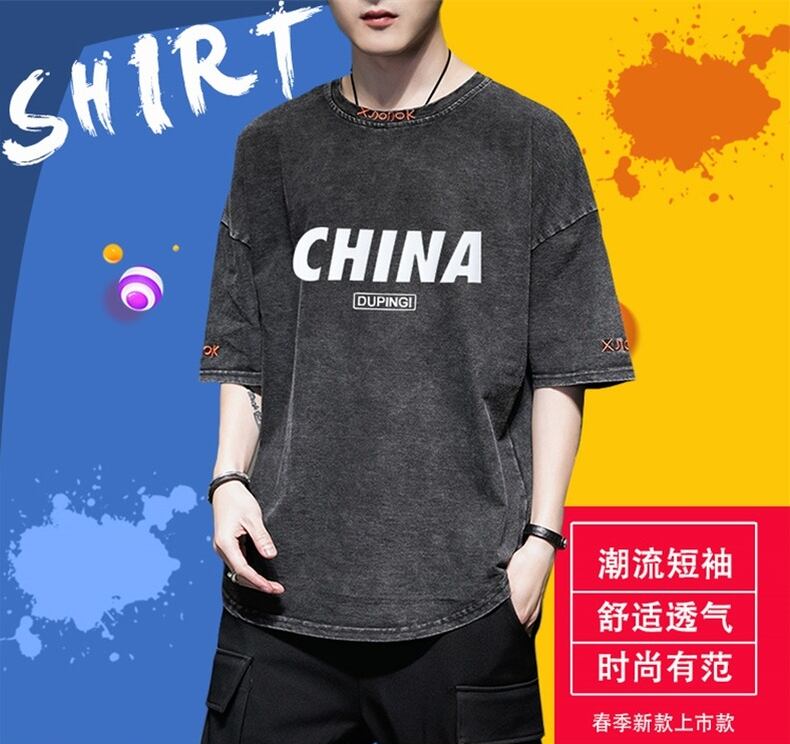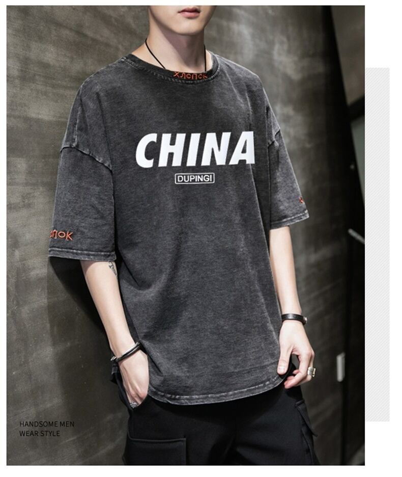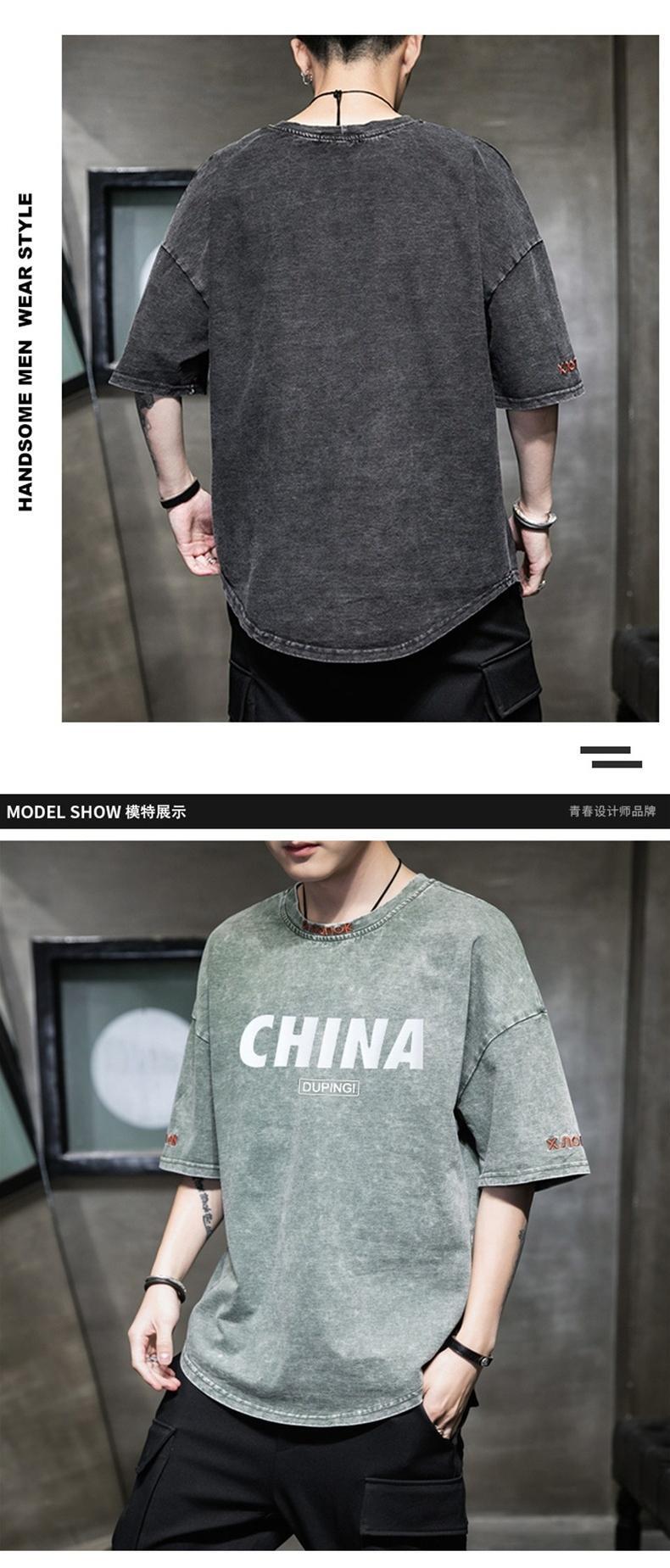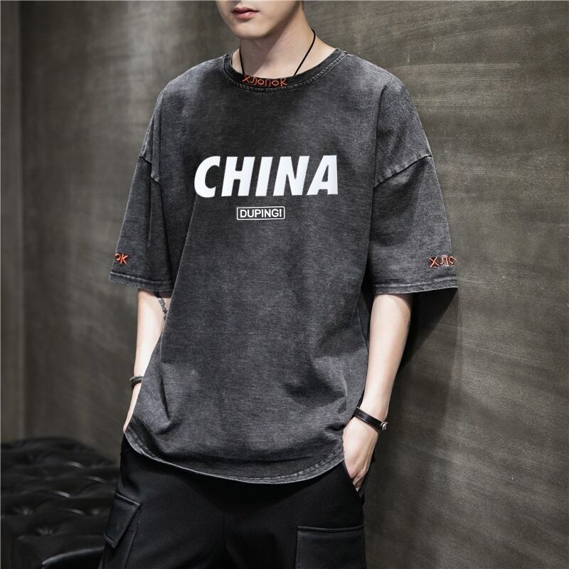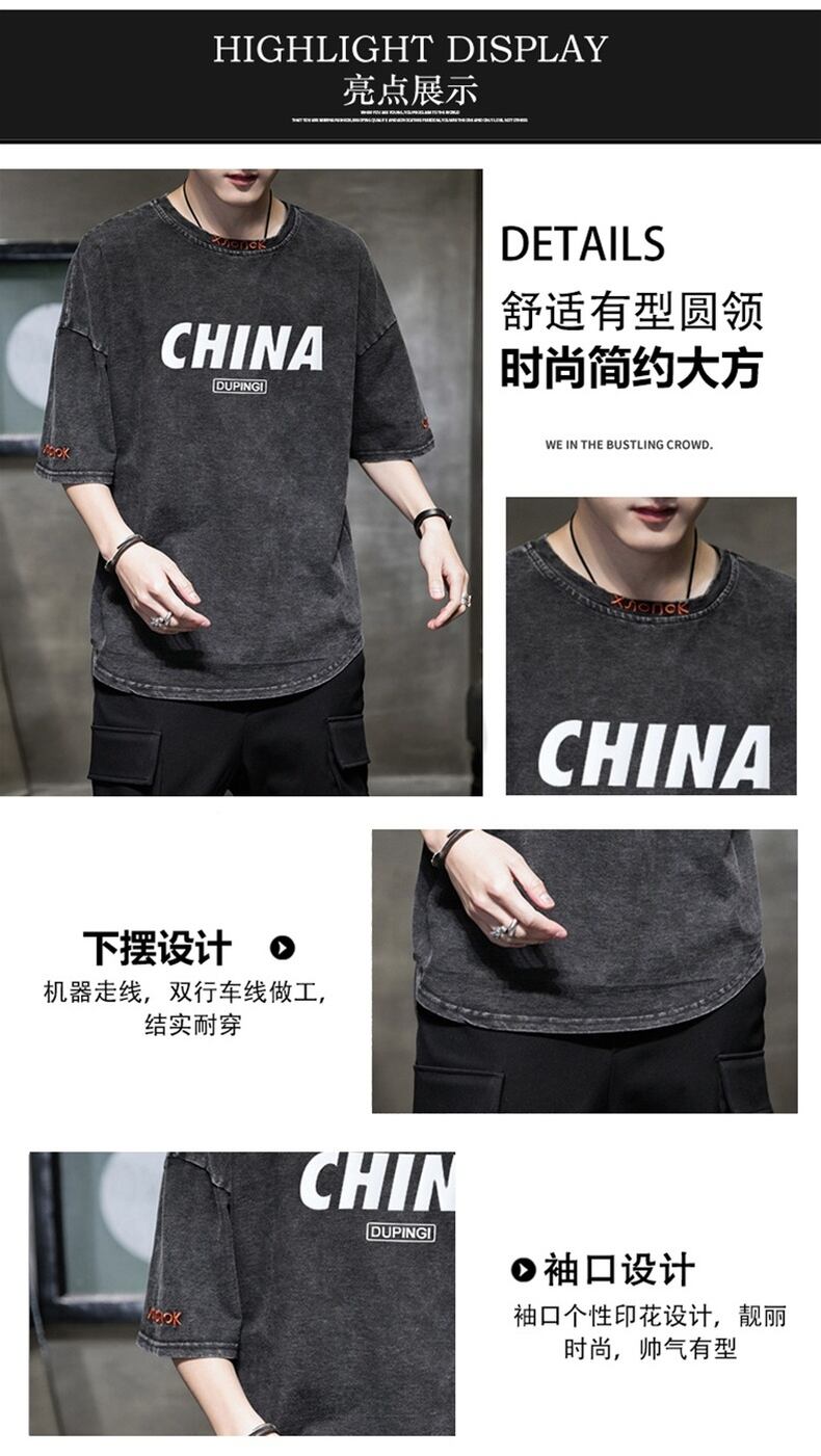 Summer men's short-sleeved t-shirt trendy loose denim Hong Kong style five-sleeved clothes 2022 new half-sleeved T-shirt tide brand サマー 夏物 Tシャツ doushi78965279400