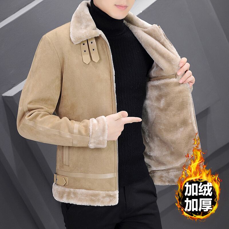 2022 new fur-in-one men's winter jacket plus velvet thickened deerskin velvet leather jacket men's trendy motorcycle clothes ウィンター 冬物 レザー doushi69651682734