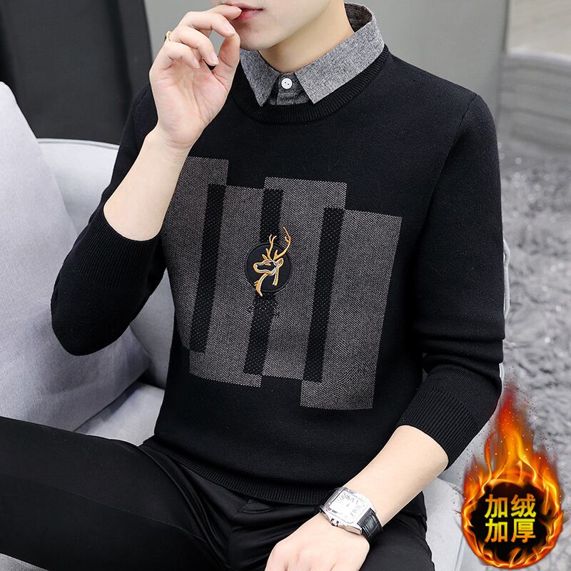 Fake two-piece sweater men's shirt collar sweater autumn and winter tide ins plus velvet thick warm fake collar bottoming shirt オータム 秋物 ウィンター 冬物 doushi72382451937