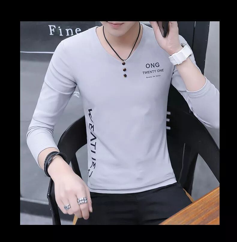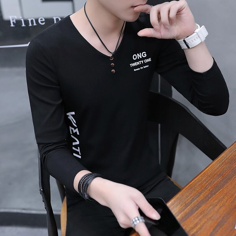 Autumn youth t-shirt men's V-neck long-sleeved fleece spring and autumn clothes version of the trend handsome sweater autumn and winter top clothes ロング スプリング 春物 オータム 秋物 ウィンター 冬物 Vネック Tシャツ doushi30656416324