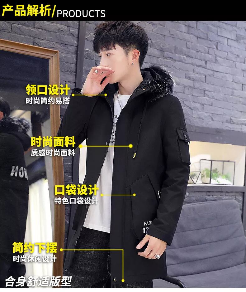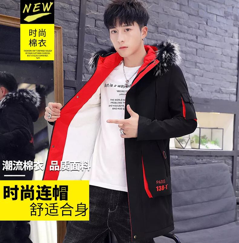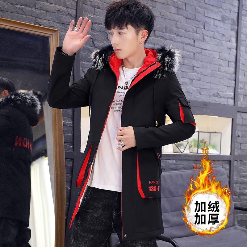 Jacket men's velvet thickened student jacket slim mid-length windbreaker men's handsome and versatile 2022 winter cotton clothes コットン ウィンター 冬物 スリム doushi6849558058