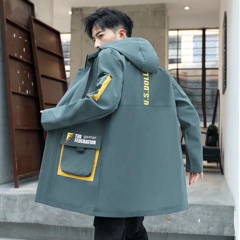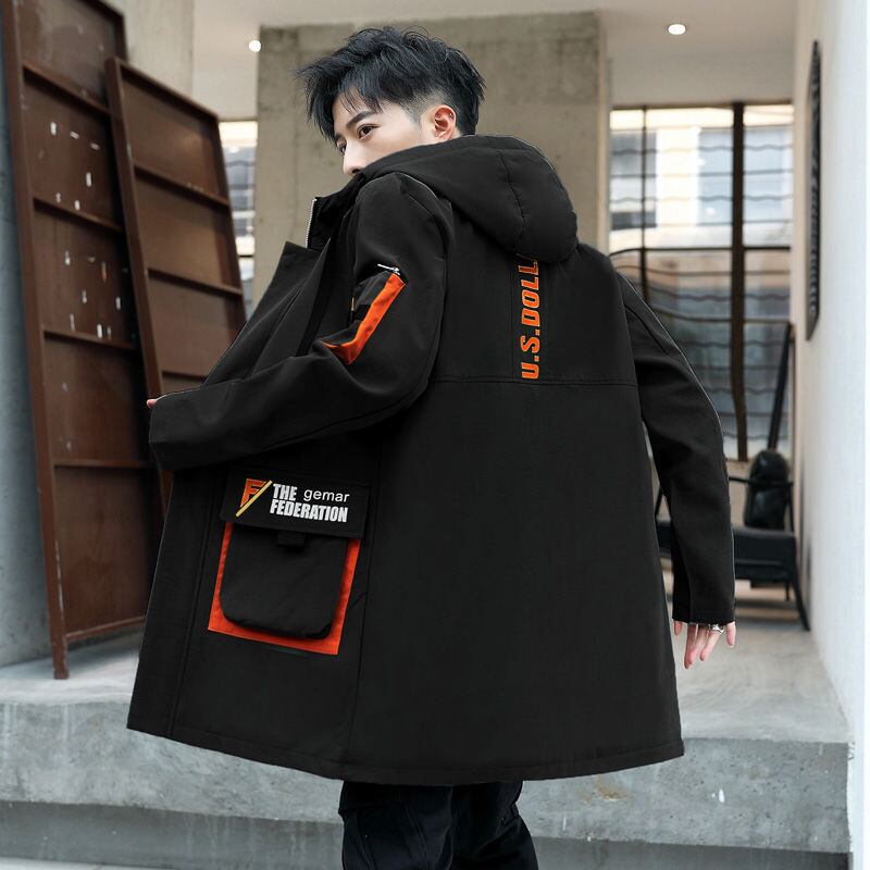 Windbreaker men's mid-length coat Chinese style jacket hooded youth thickening student autumn and winter trend clothes オータム 秋物 ウィンター 冬物 doushi30265832471