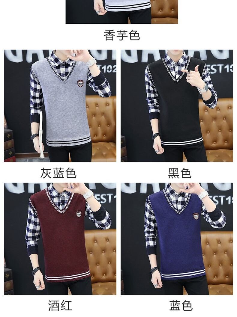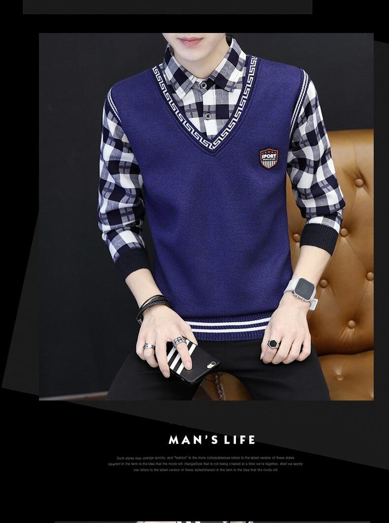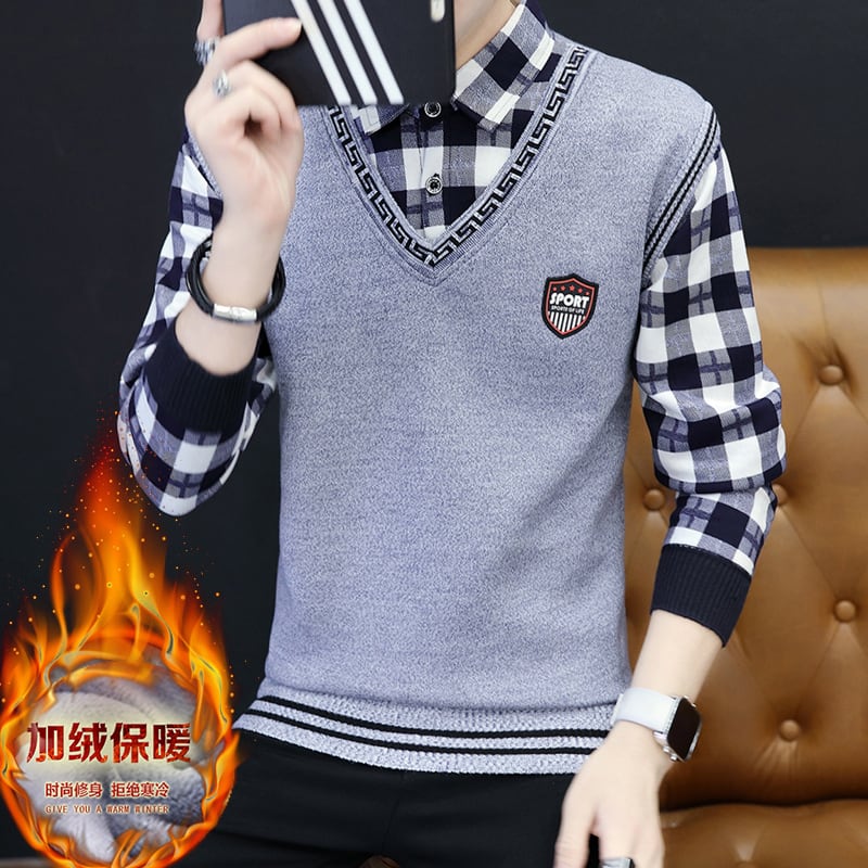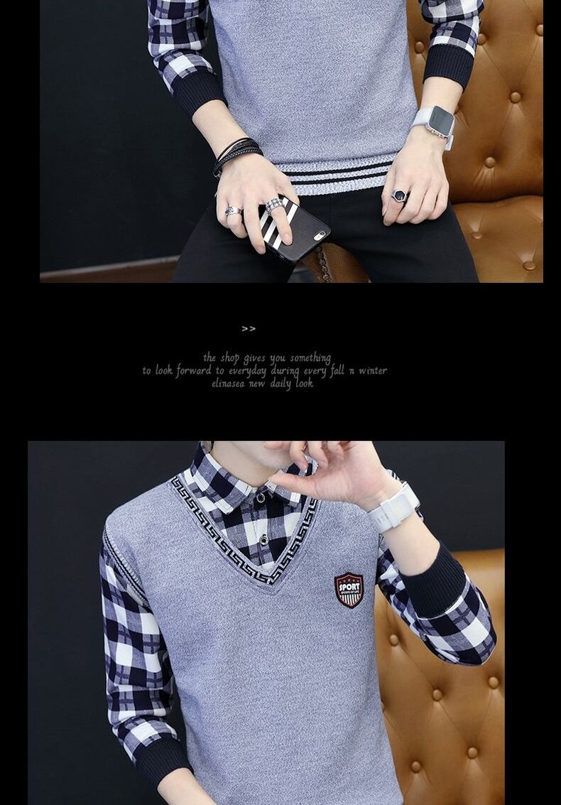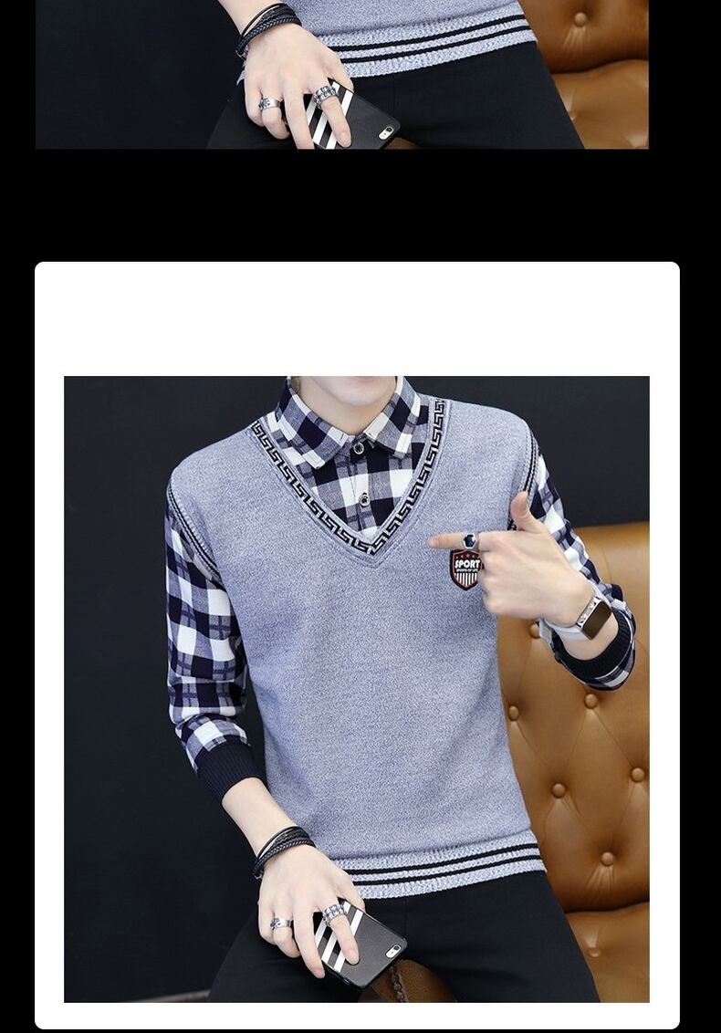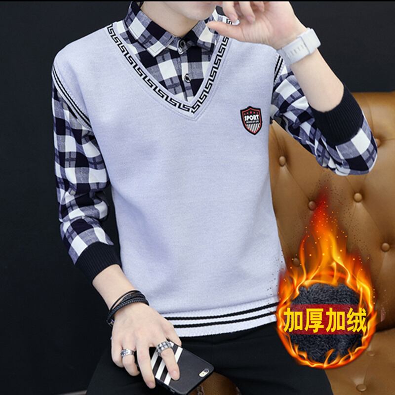 Autumn and winter long-sleeved shirt sweater men's fake two-piece shirt t-shirt plus velvet bottoming shirt teen coat top clothes ロング オータム 秋物 ウィンター 冬物 Tシャツ doushi1323638033