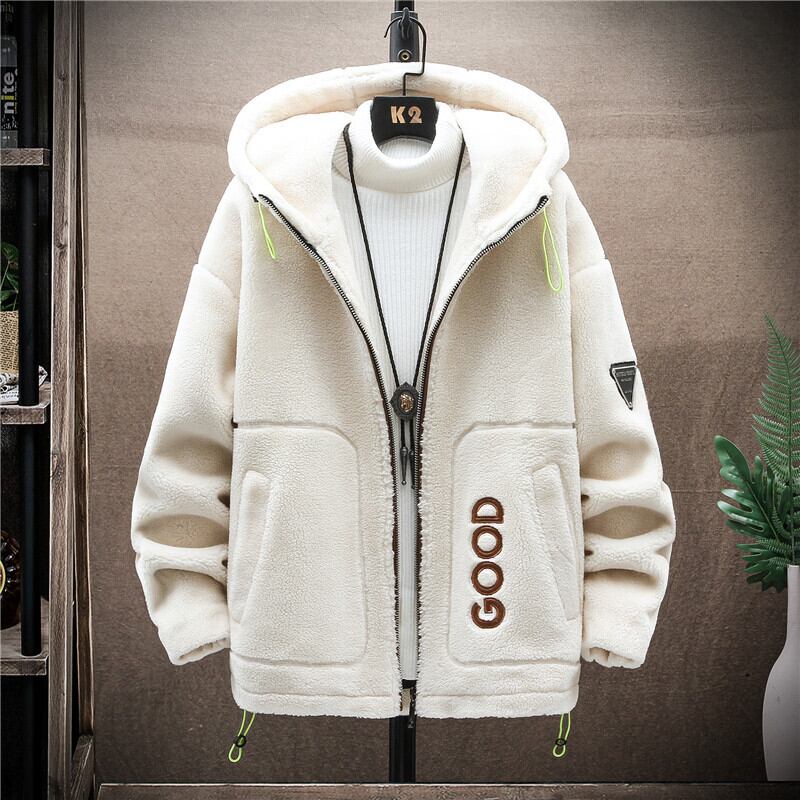 Men's hooded cotton coat winter trend casual lamb velvet jacket tide brand grain velvet warm and thick winter cotton coat コットン カジュアル ウィンター 冬物 doushi87345852625