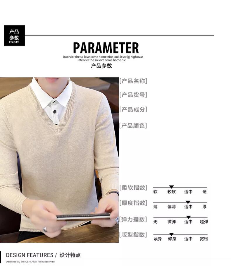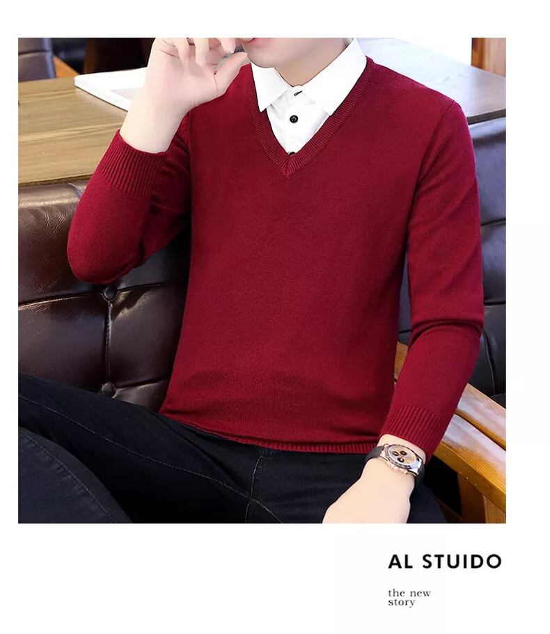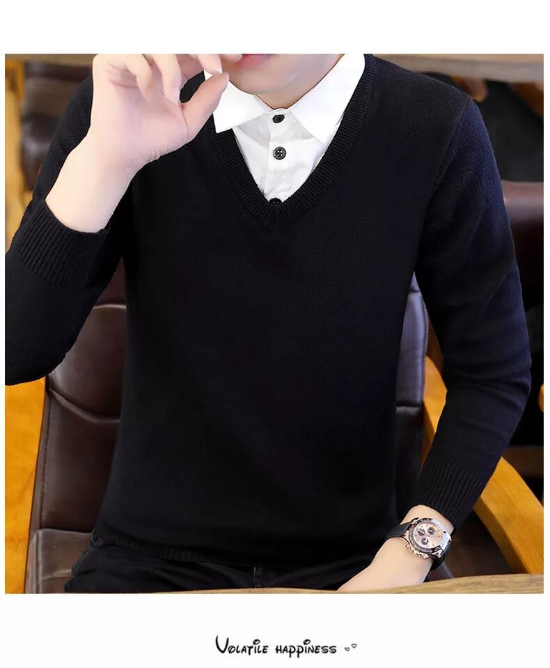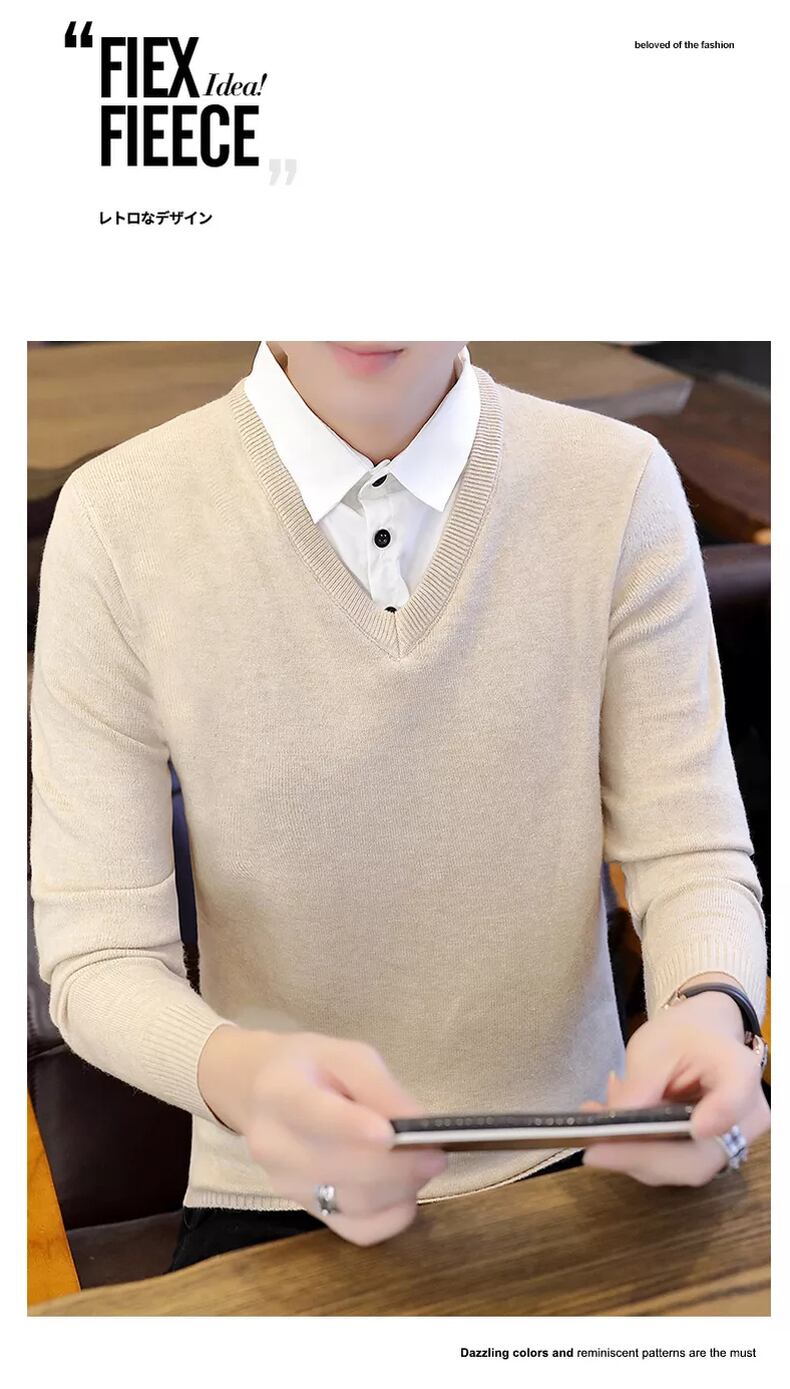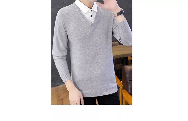 Shirt collar sweater men's fake two-piece version slim autumn and winter new trend knitted fake collar bottoming shirt bottoming shirt オータム 秋物 ウィンター 冬物 スリム doushi21140490278