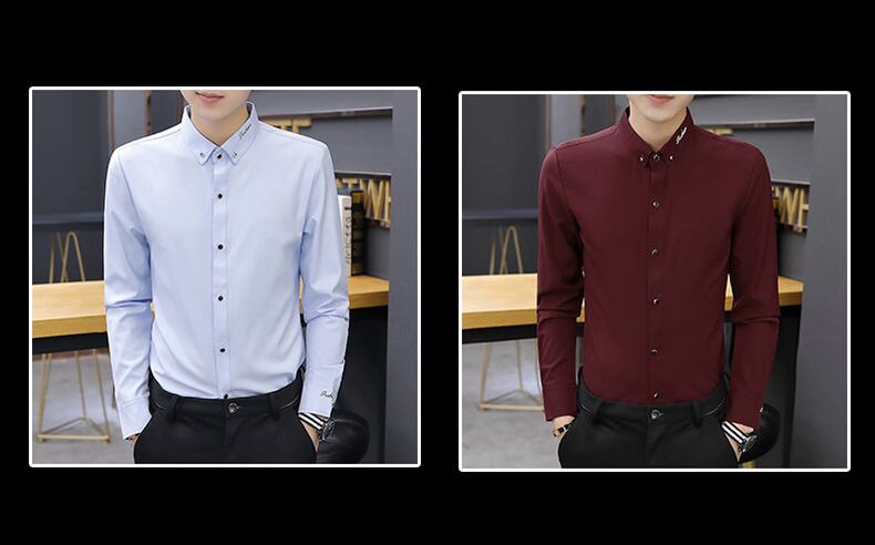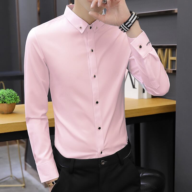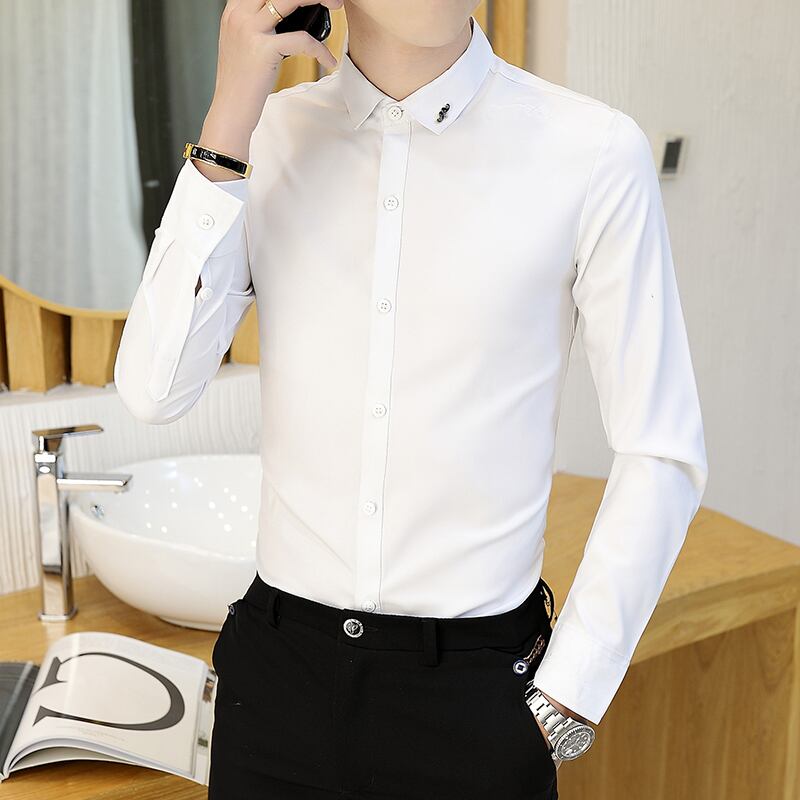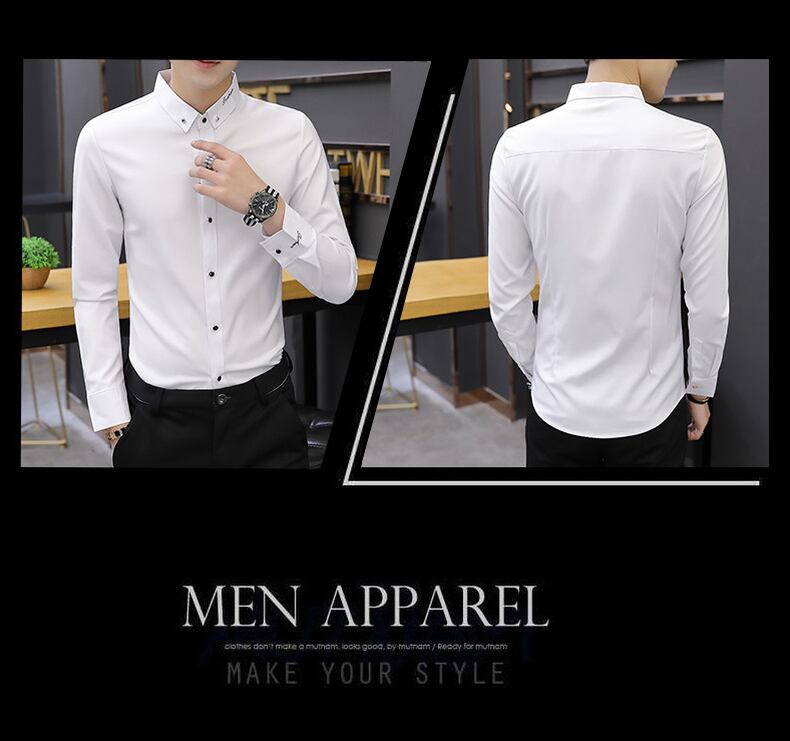 Spring and summer black shirt men's long-sleeved slim men's shirt business casual iron-free ruffian handsome inch shirt trend ロング ブラック カジュアル スプリング 春物 サマー 夏物 スリム doushi72646556949