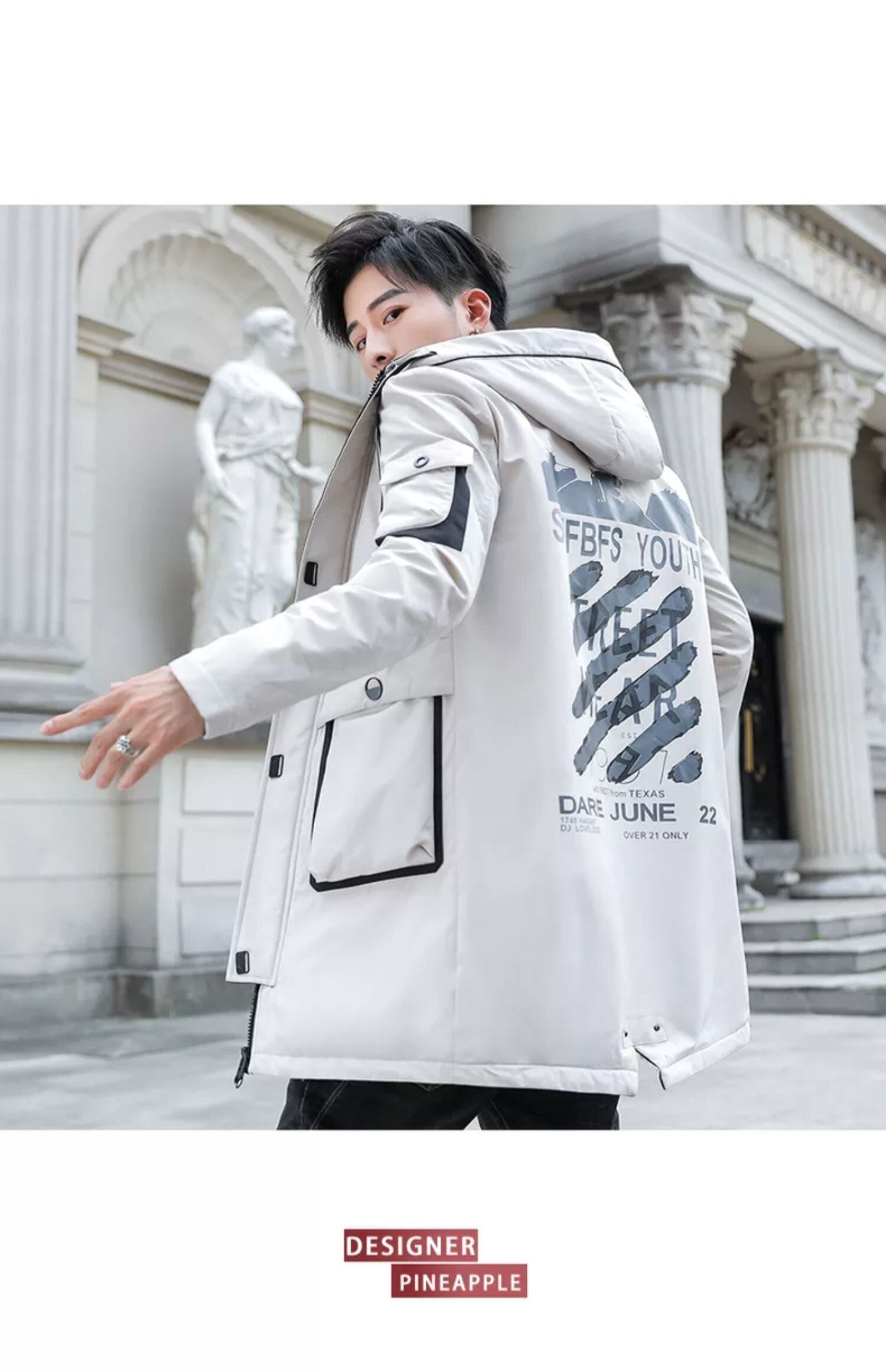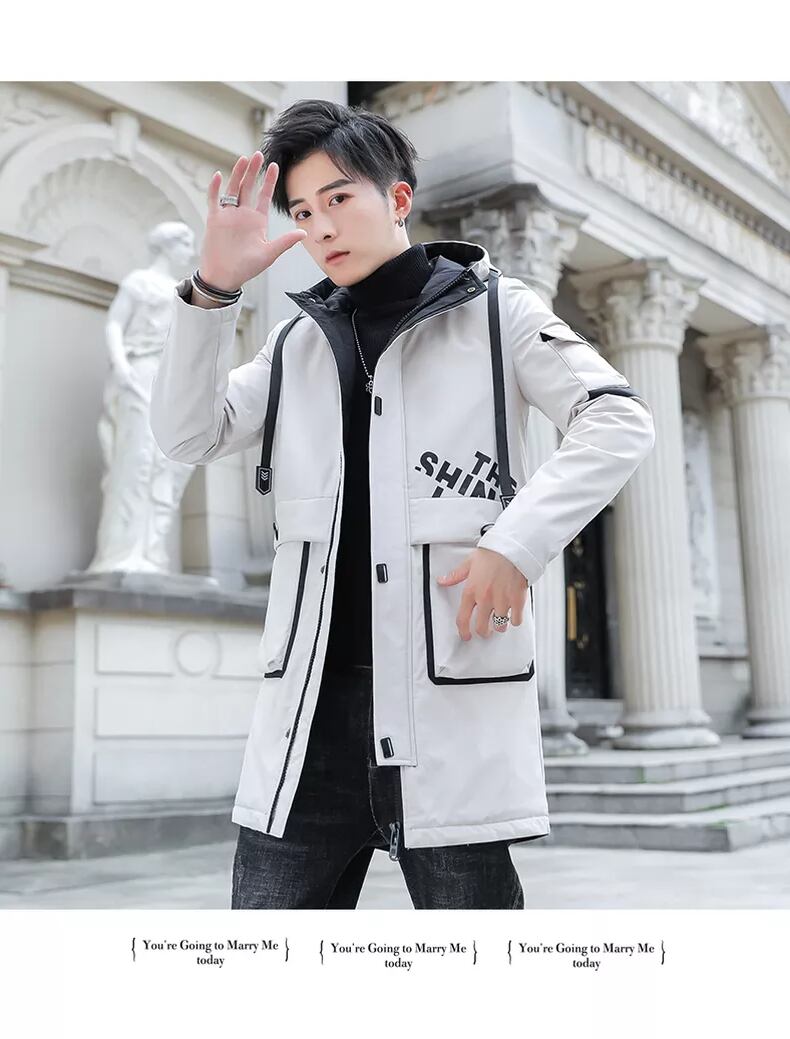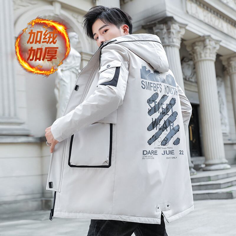 Men's jacket autumn and winter 2022 new version of the trend of self-cultivation handsome plus velvet thickened medium and long windbreaker men's autumn clothes ロング オータム 秋物 ウィンター 冬物 doushi7076614143