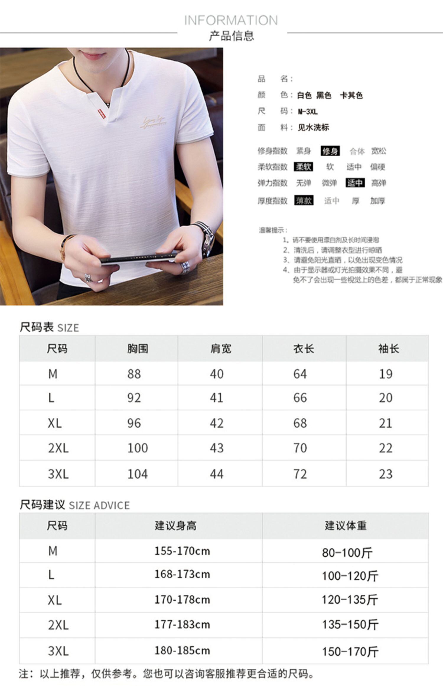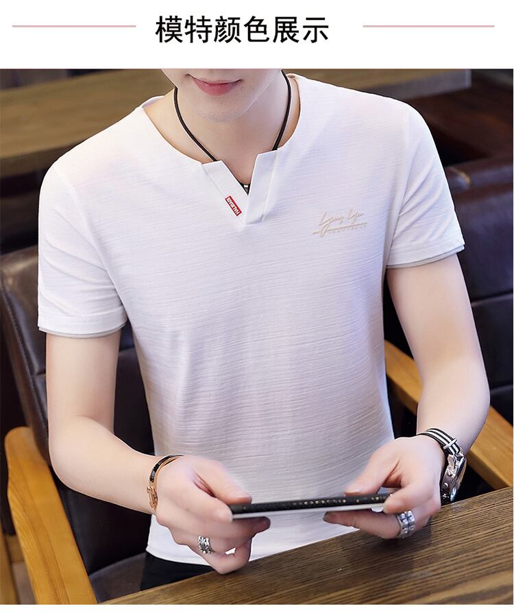 Summer 2022 new men's short-sleeved T-shirt V-neck cotton self-cultivation trend tide brand all-match men's body clothes コットン サマー 夏物 Vネック Tシャツ doushi23350751371