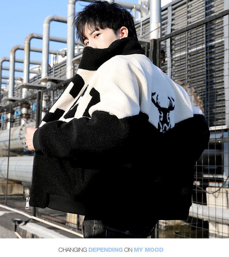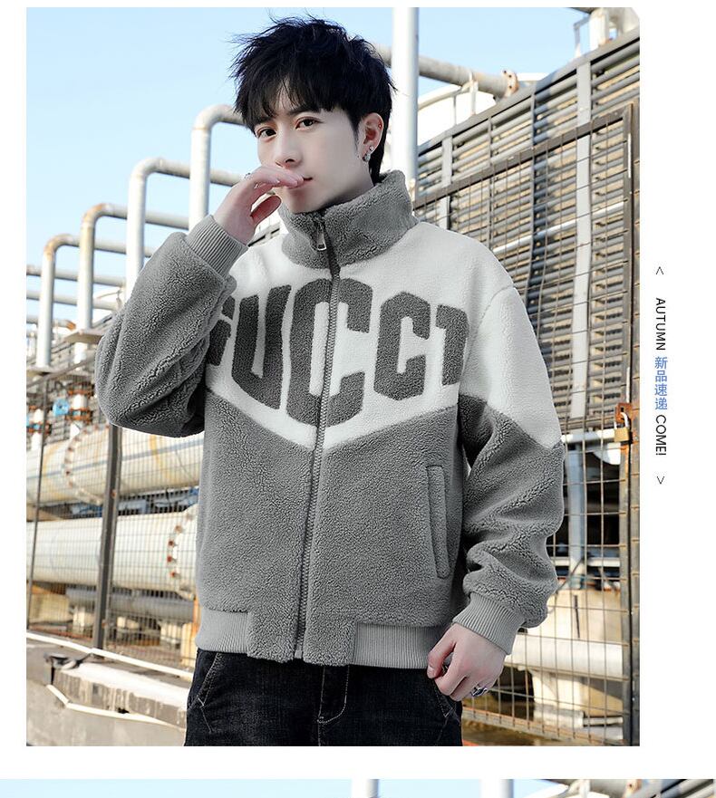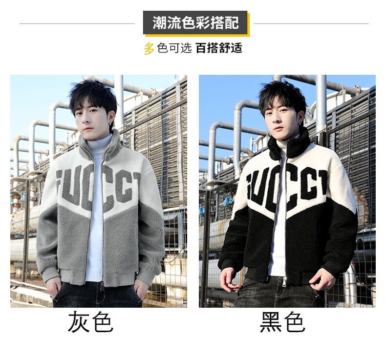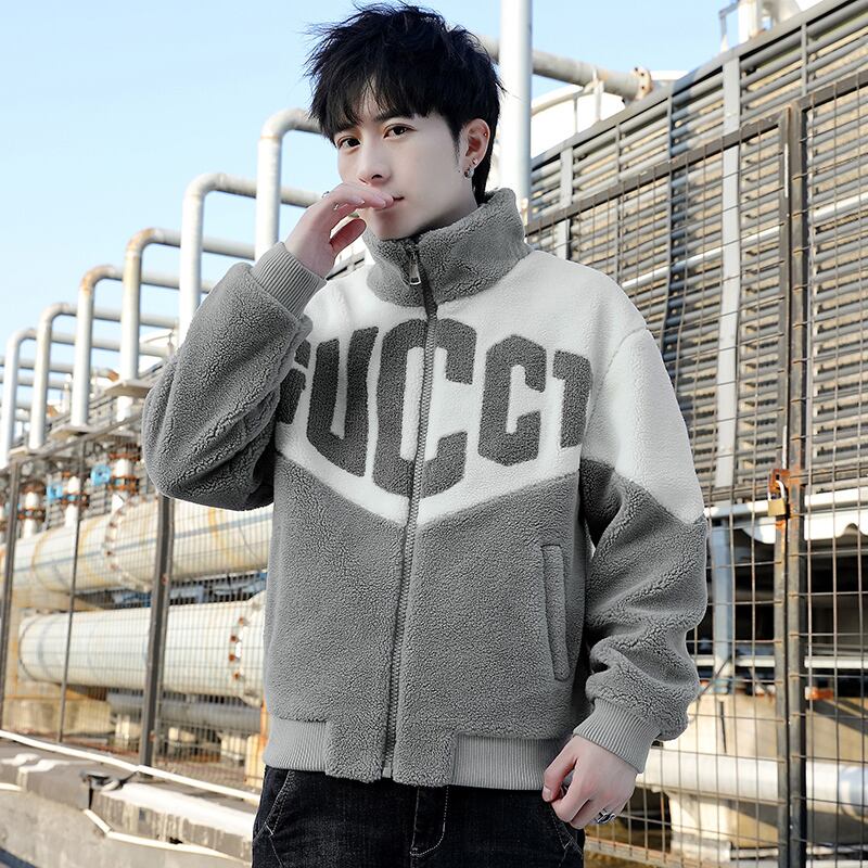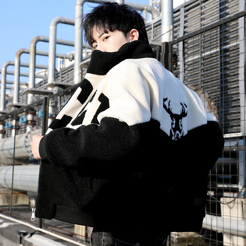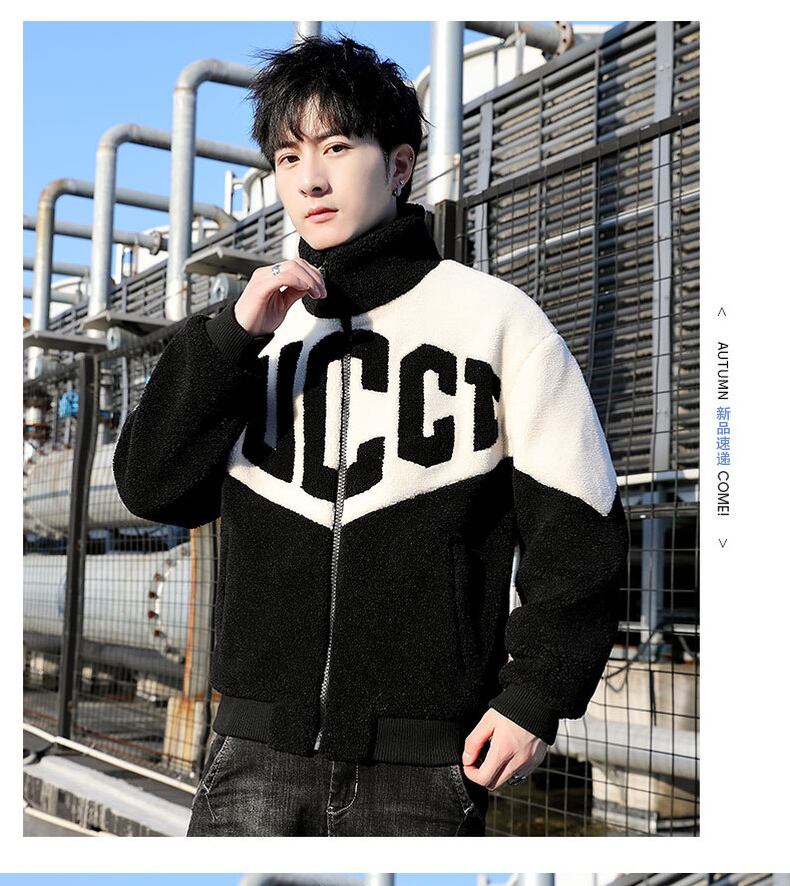 Winter lamb wool jacket men's version of the trend stand collar thickened grain velvet short windbreaker student polar fleece jacket ショート ウィンター 冬物 doushi19296207156