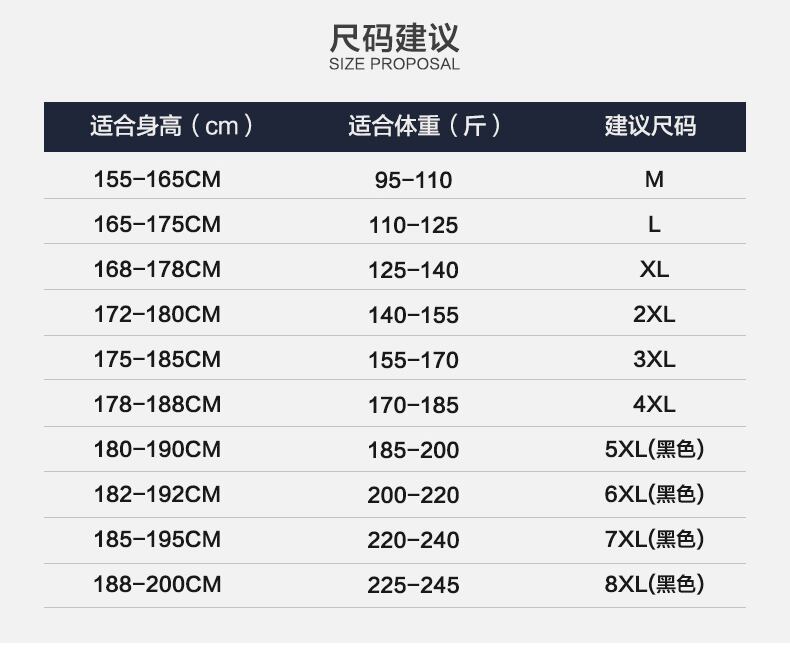 サイズ:165/M,170/L,175/XL,180/2XL,185/3XL,190/4XL