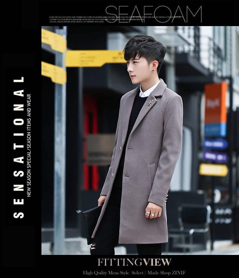 Spring and autumn new woolen coat version slim woolen coat men's windbreaker mid-length Nizi men's thickening スプリング 春物 オータム 秋物 スリム doushi69230554326