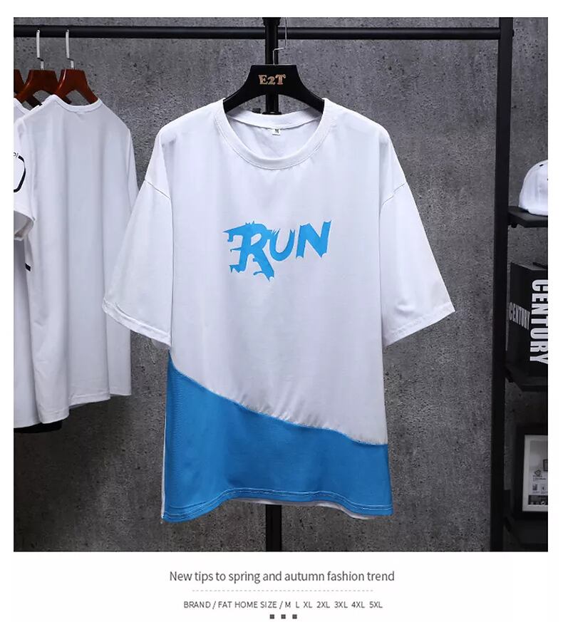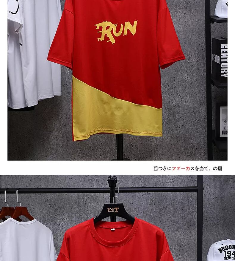 2022 summer clothes men's contrast color loose short-sleeved T-shirt men's European and American men's half-sleeved trend fake two-piece top clothes サマー 夏物 Tシャツ ヨーロピアン doushi11442576320