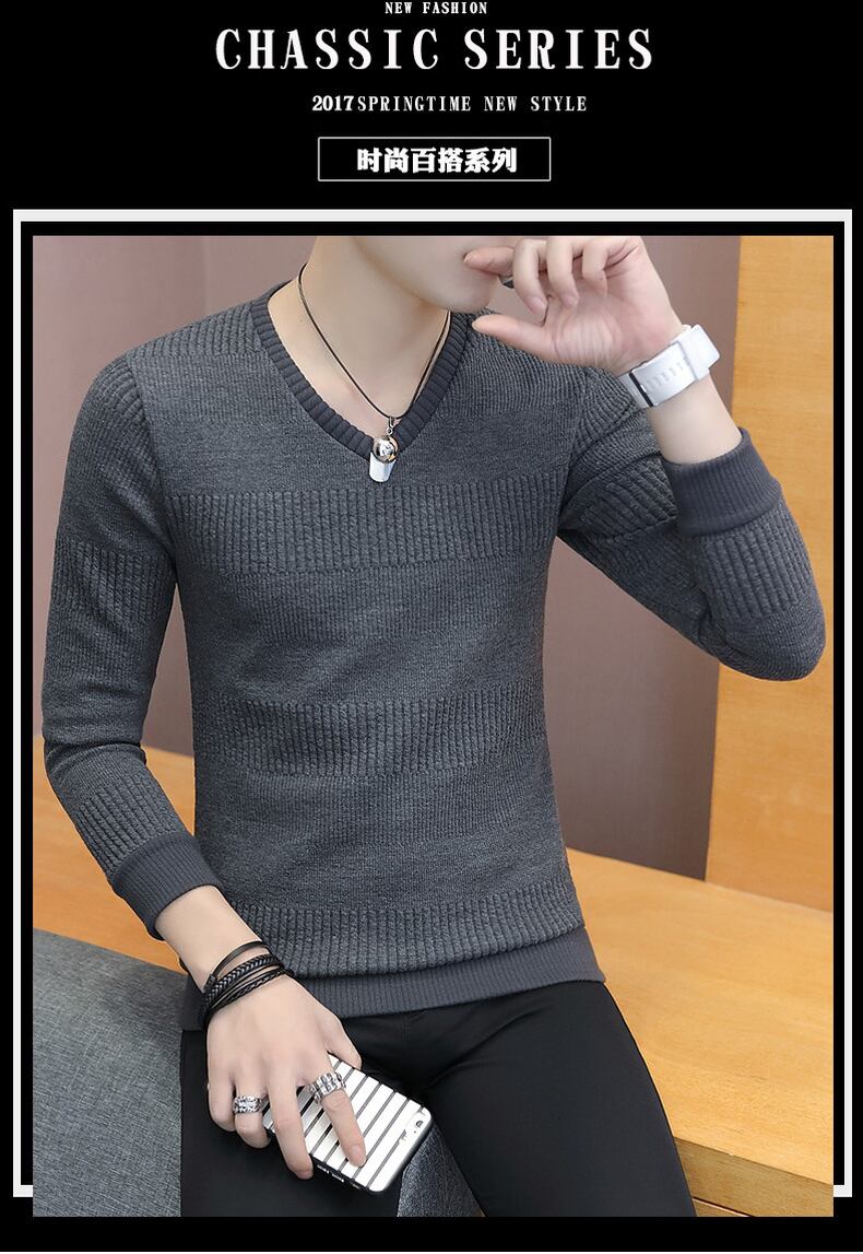 Men's long-sleeved t-shirt spring new 2022 fleece thickening casual trend V-neck bottoming shirt men's all-match sweater ロング カジュアル スプリング 春物 Vネック Tシャツ doushi98077035258