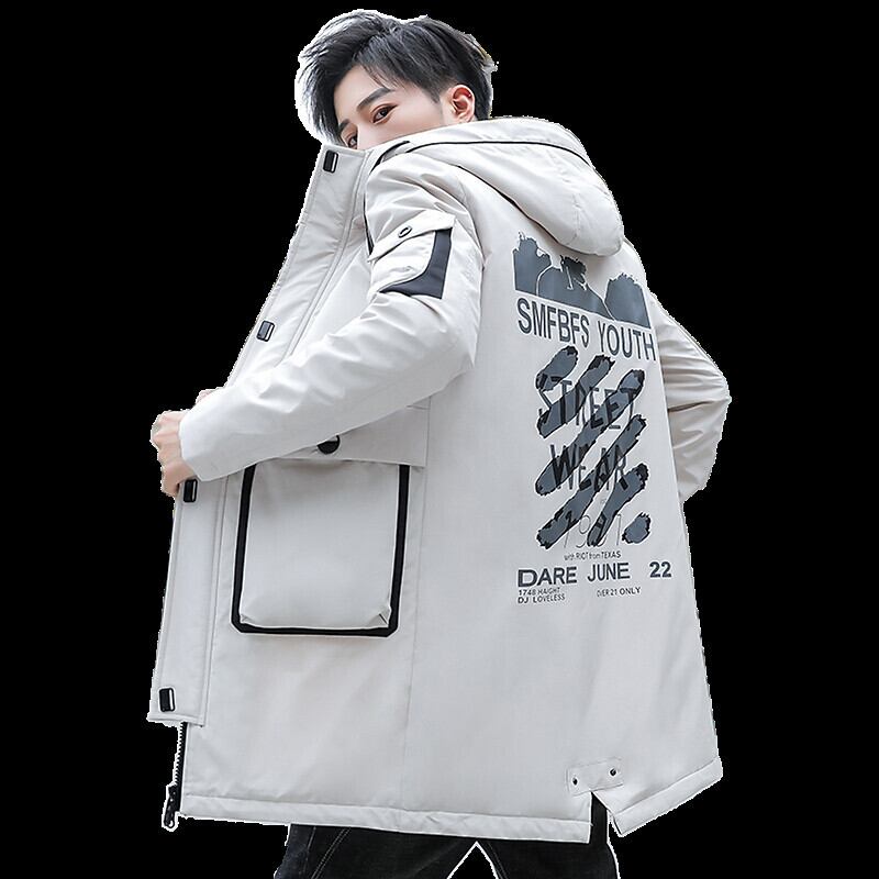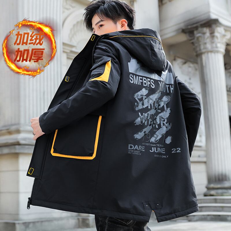 Men's windbreaker mid-length version slim fit 2022 new coat autumn and winter plus velvet thick handsome trendy coat オータム 秋物 ウィンター 冬物 スリム doushi34529022683