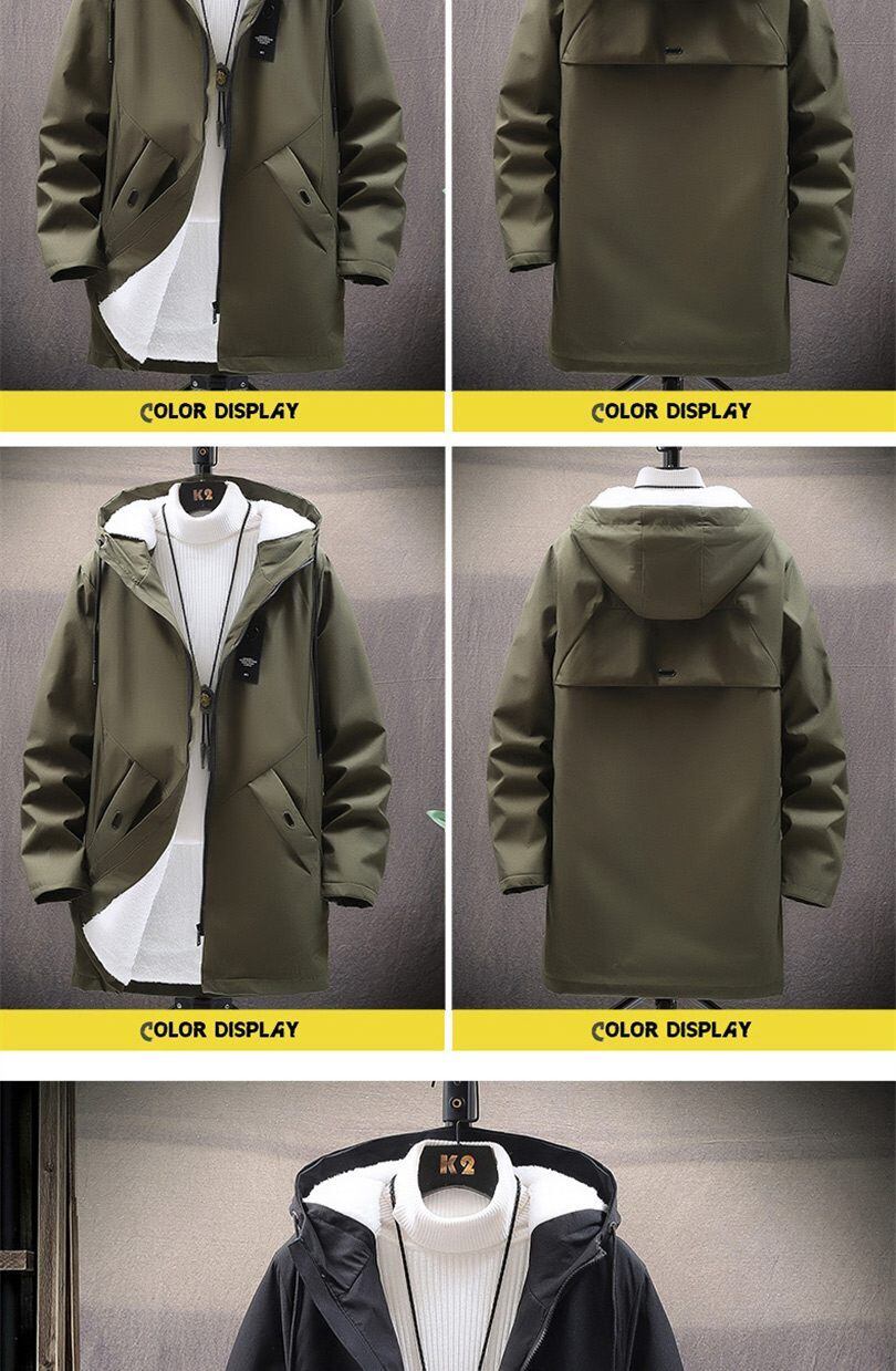 Autumn and winter new men's jackets, men's padded jackets, velvet padded jackets, hooded workwear, loose and thickened, mid-length, cold and warm tops オータム 秋物 ウィンター 冬物 doushi91958240005