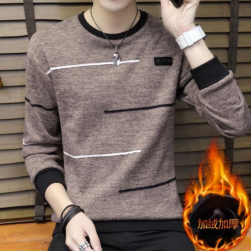 2022 new autumn and winter round neck warm sweater men's plus velvet thick sweater knitted sweater version of the bottoming shirt trend オータム 秋物 ウィンター 冬物 Oネック doushi63821711314