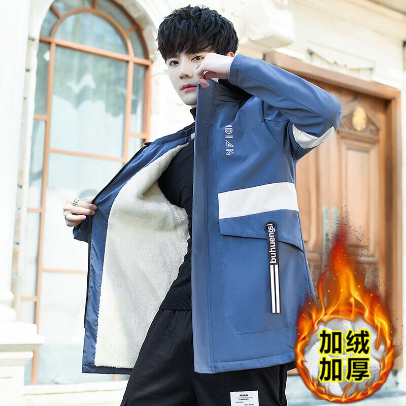 Winter mid-length cotton coat men's plus velvet thick warm cotton coat large size loose hooded work coat cotton jacket コットン 大きめサイズ ウィンター 冬物 doushi34563555970