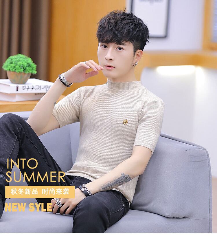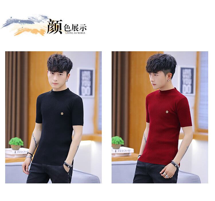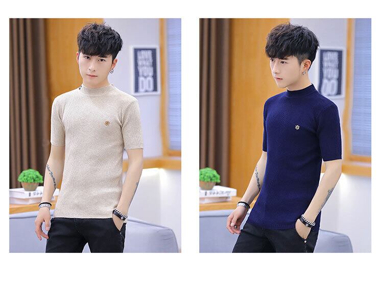 2022 spring men's new short-sleeved knitted sweater slim sweater men's trend pullover V-neck trend version t-shirt スプリング 春物 Vネック スリム Tシャツ doushi63932741656