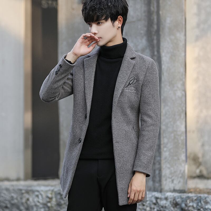 Spring and autumn new windbreaker men's mid-length version trend slim thick woolen coat men's casual coat カジュアル スプリング 春物 オータム 秋物 スリム doushi35267824100