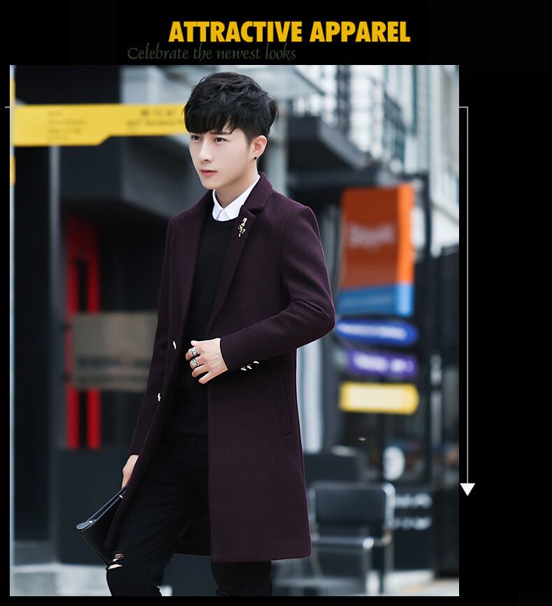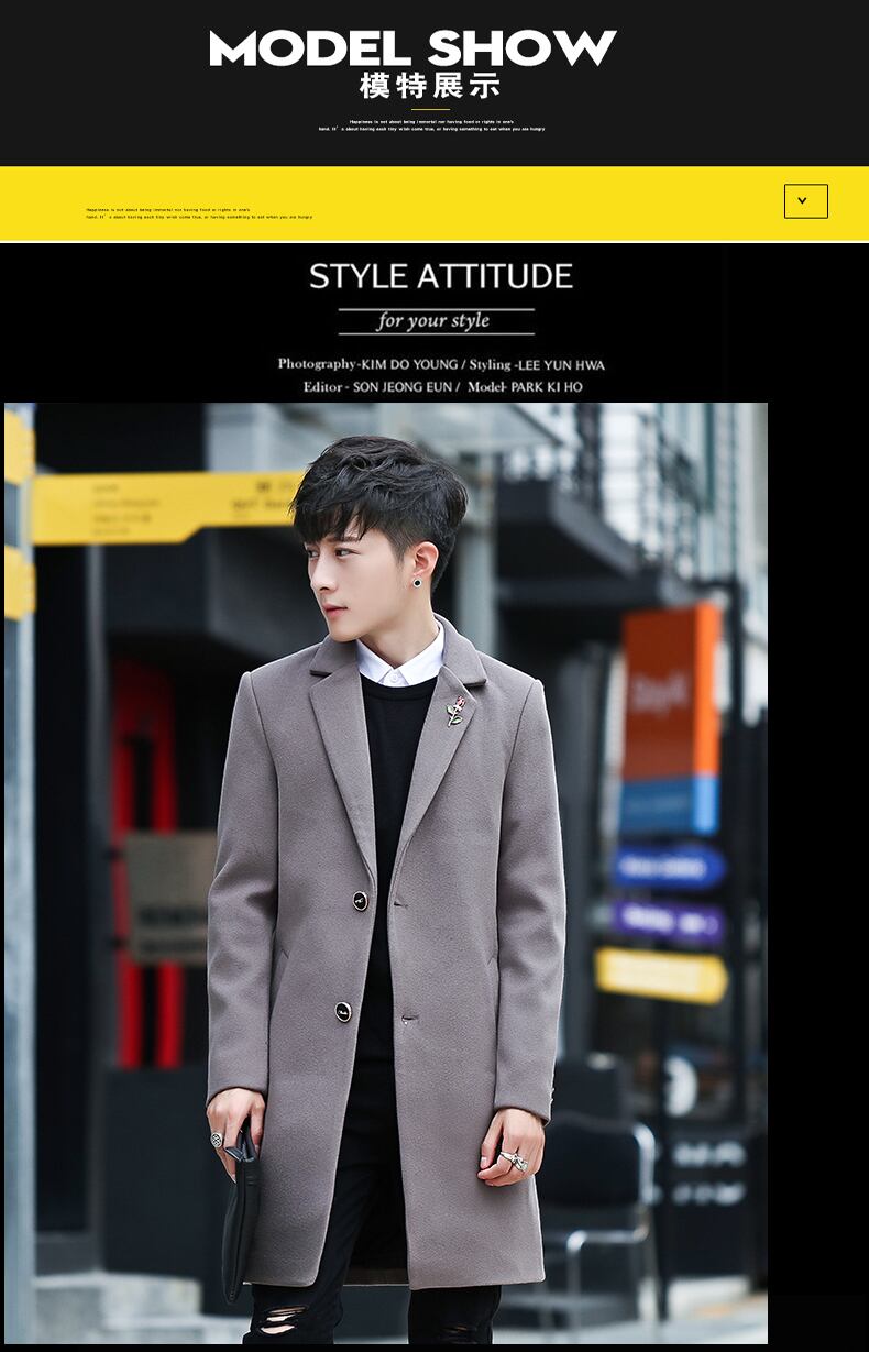 Spring woolen coat men's mid-length version trend British woolen coat men's windbreaker 2022 new men's clothing スプリング 春物 doushi62404375585