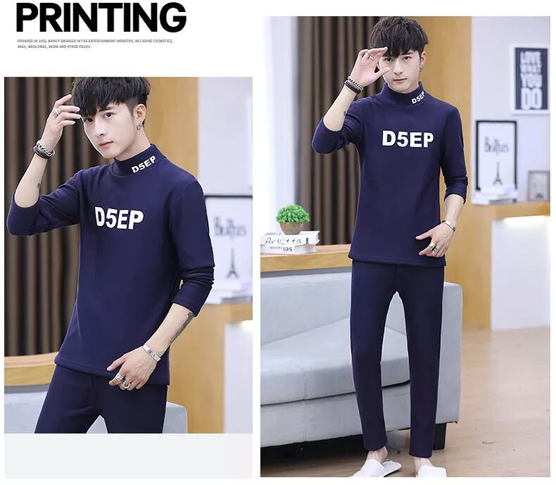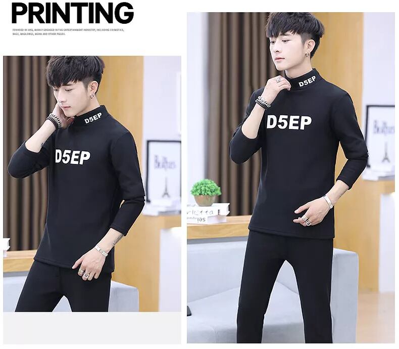 Autumn and winter men's round neck long-sleeved t-shirt plus velvet thickening base warm clothes men's new autumn clothes suit ロング オータム 秋物 ウィンター 冬物 Oネック Tシャツ doushi16372405472