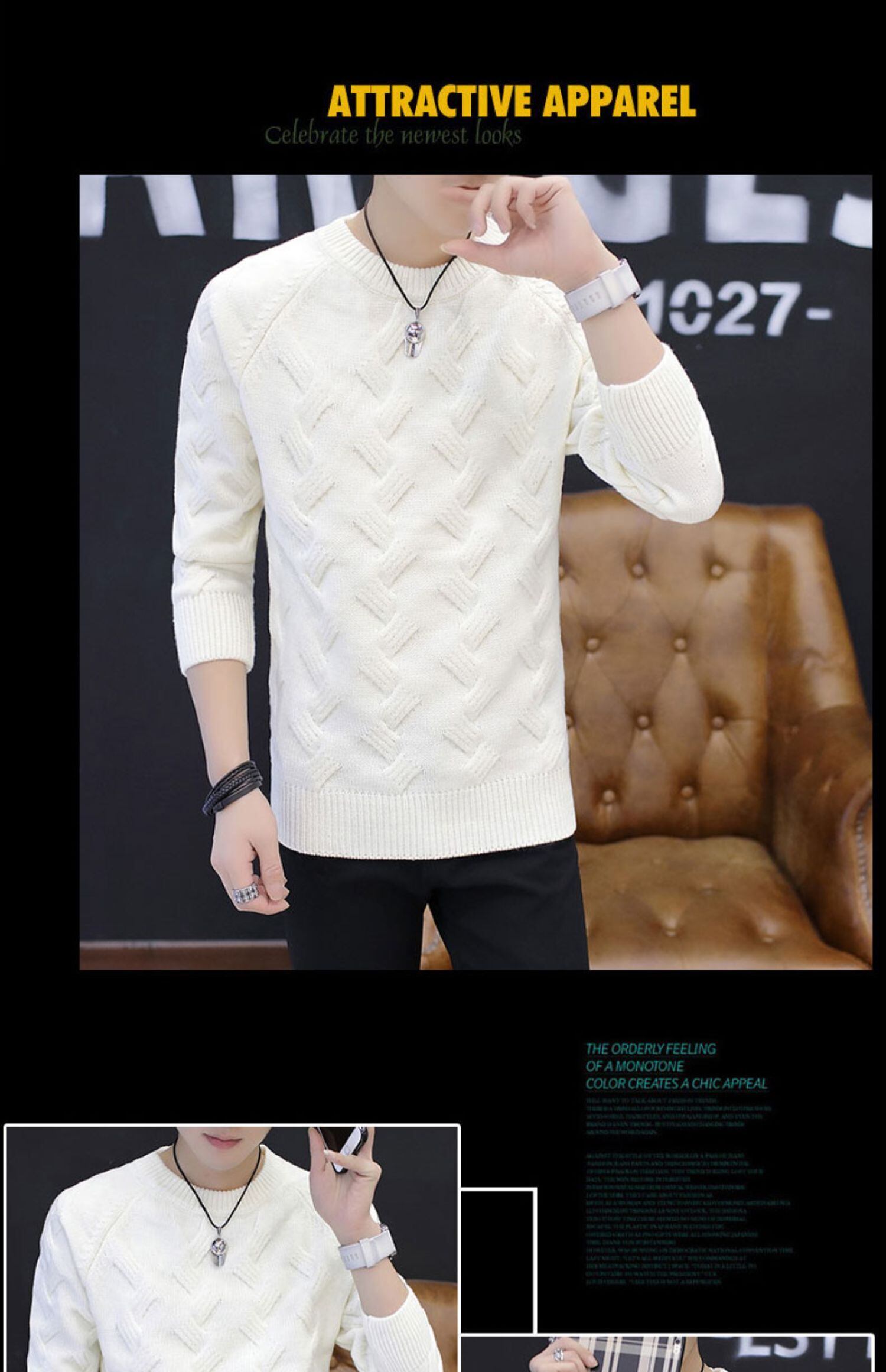 2022 autumn and winter men's sweater version trend round neck sweater slim solid color warm sweater men's clothes オータム 秋物 ウィンター 冬物 Oネック スリム ソリッドカラー doushi57887896659