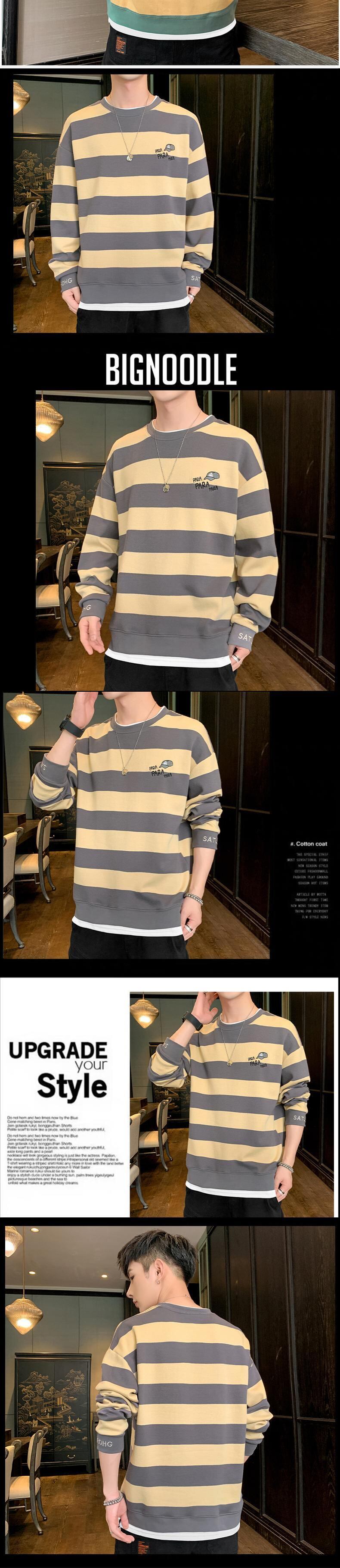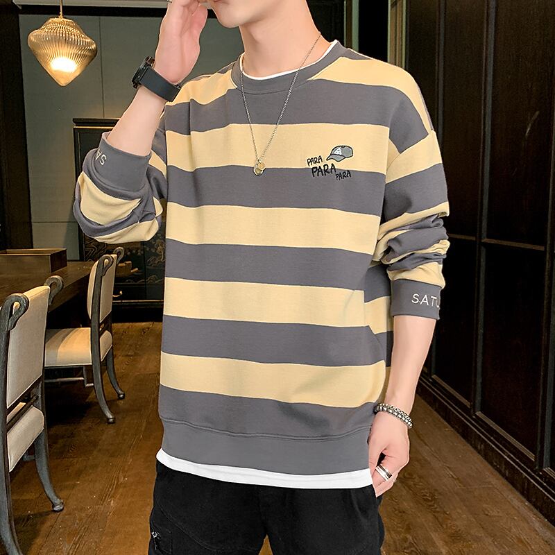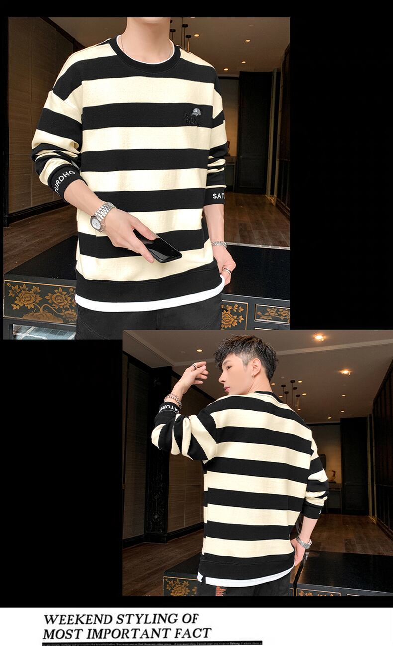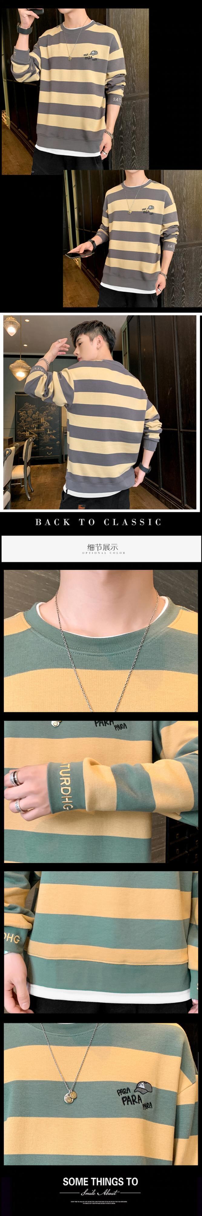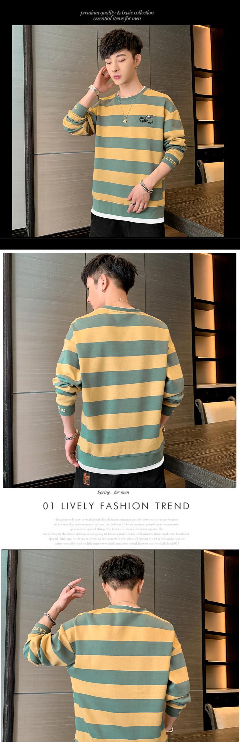 Cotton long-sleeved T-shirt men's 2022 spring new men's shirts tide brand trend loose retro striped sweater men ロング コットン レトロ シャツ スプリング 春物 ストライプ Tシャツ doushi68310853257
