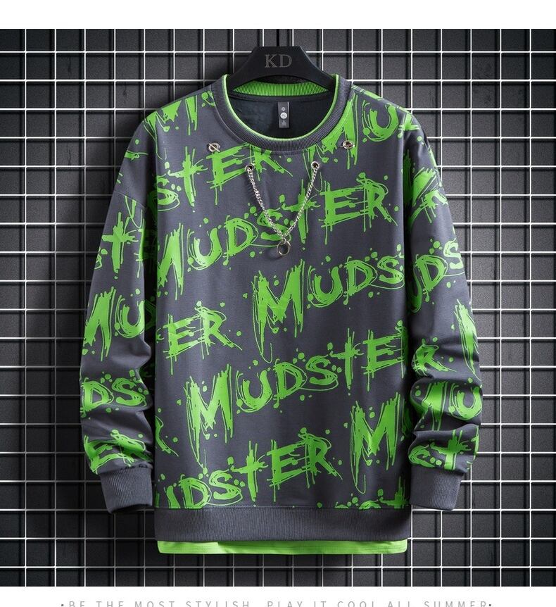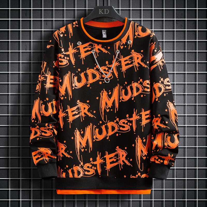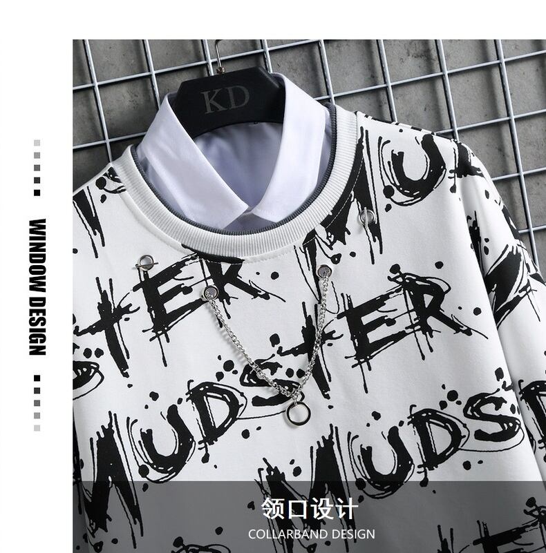 2022 autumn new men's all-match trend version of the Hong Kong style round neck sweater youth letter printing clothes オータム 秋物 Oネック doushi378160002