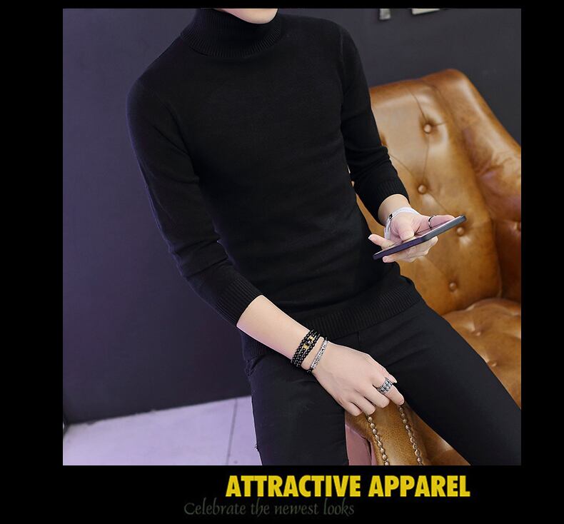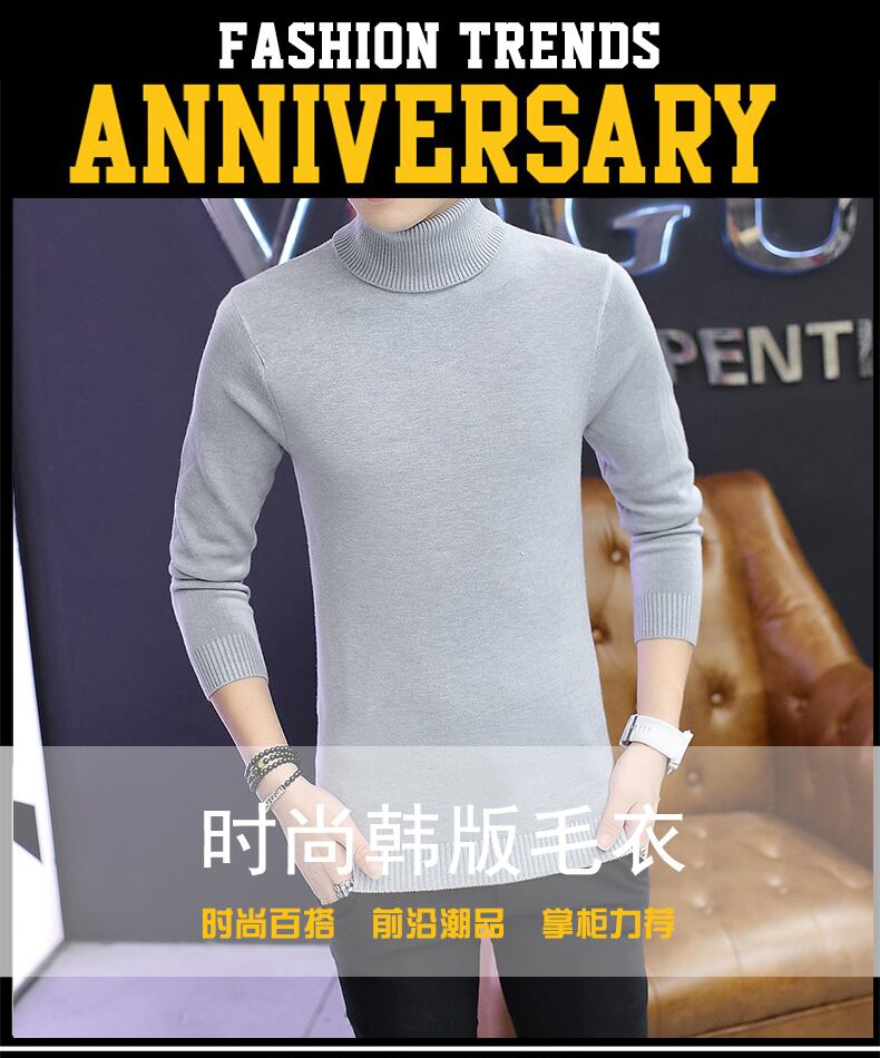 Autumn and winter men's white turtleneck sweater version of the slim knitted sweater with fleece bottoming shirt men's line clothing trend ホワイト オータム 秋物 ウィンター 冬物 スリム doushi20551720505