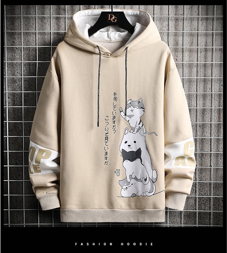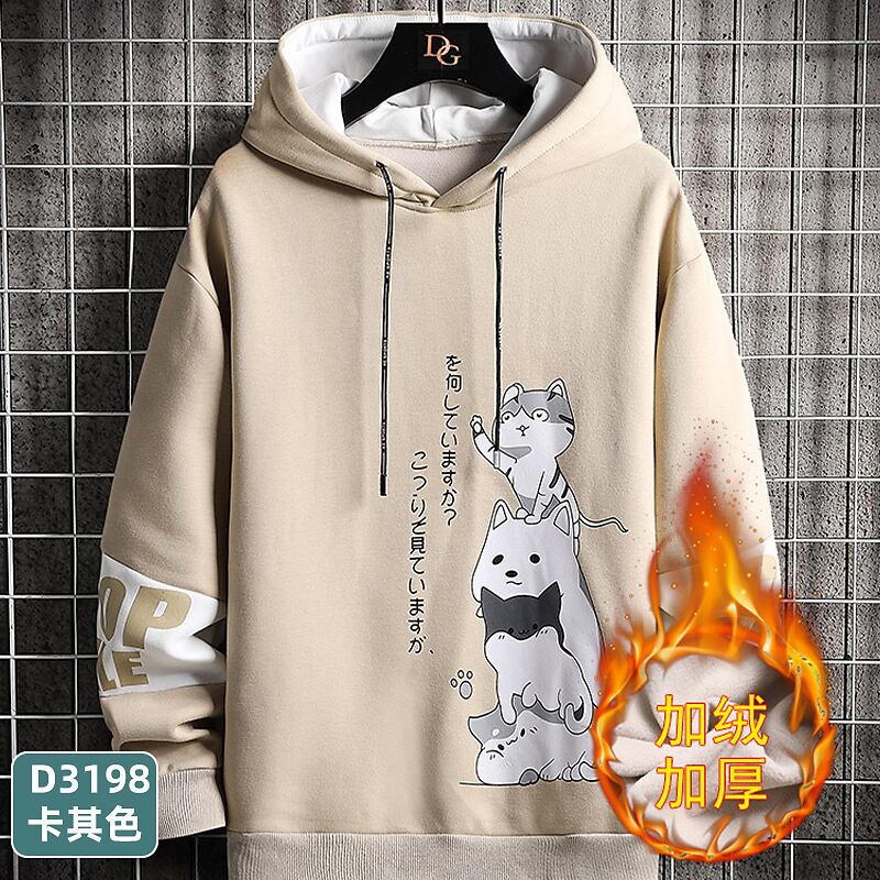 Fleece sweater men's autumn and winter loose trend hooded clothes boys' tops bottoming shirts thickened winter coats men シャツ オータム 秋物 ウィンター 冬物 doushi66757287989