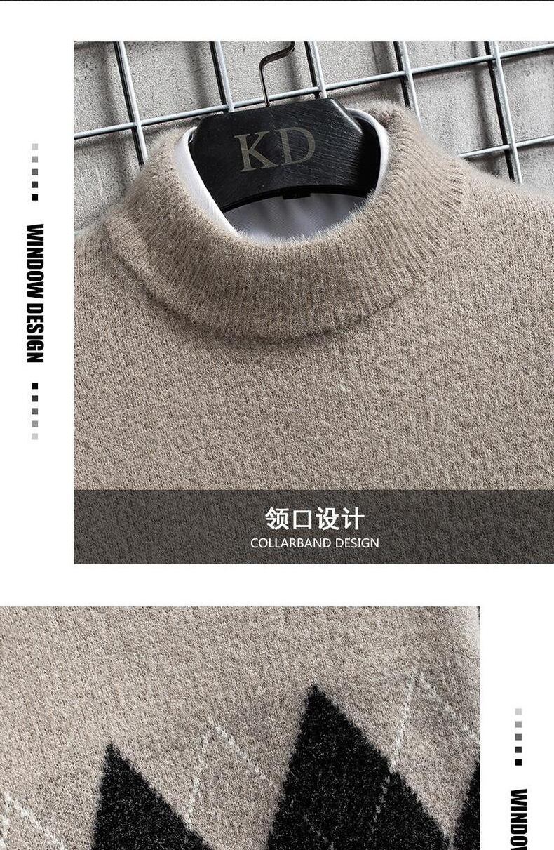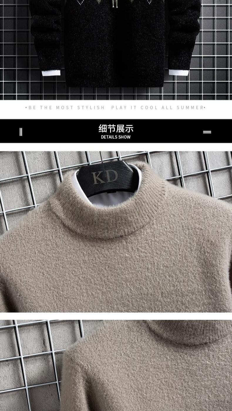 Half turtleneck sweater men's autumn and winter warm plus velvet thickened mink velvet middle collar bottoming sweater top clothes オータム 秋物 ウィンター 冬物 doushi32607587162