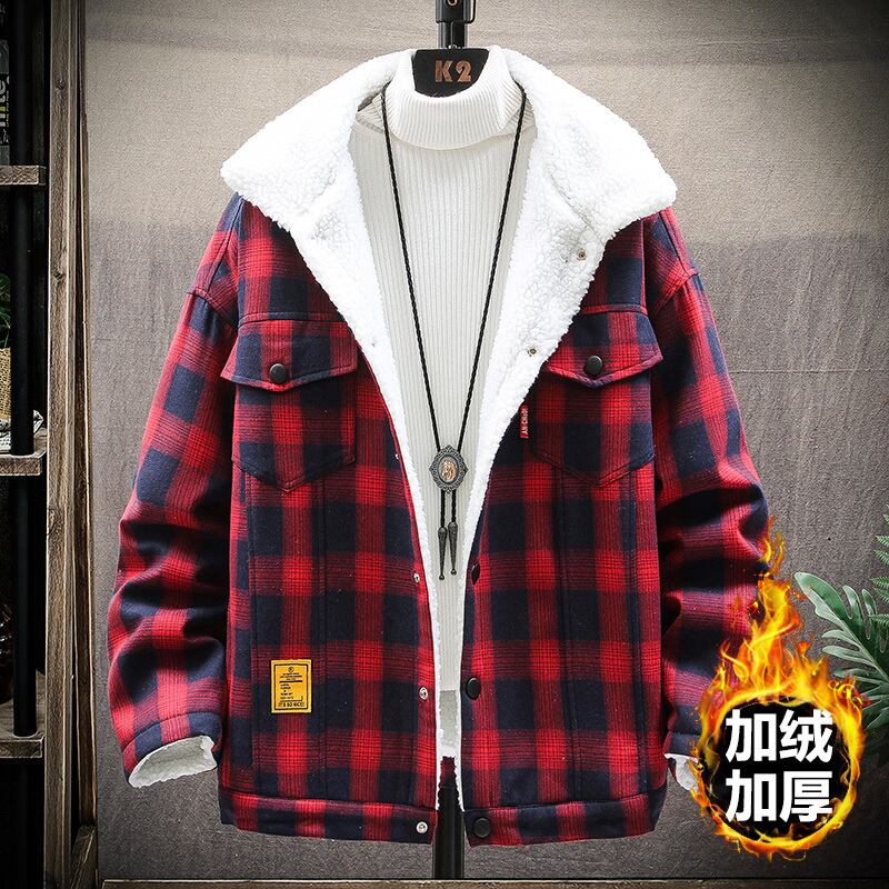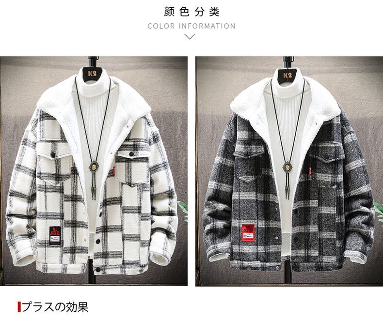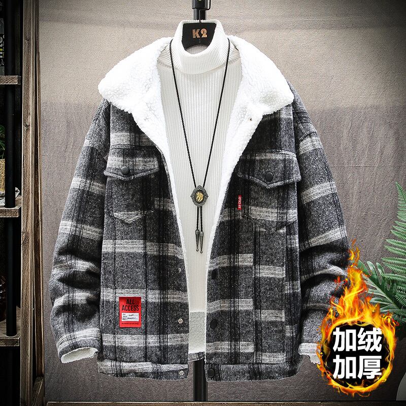 Lamb wool plus velvet men's autumn and winter coat clothes trend loose plus size jacket men's autumn tops 大きめサイズ オータム 秋物 ウィンター 冬物 doushi84507563469