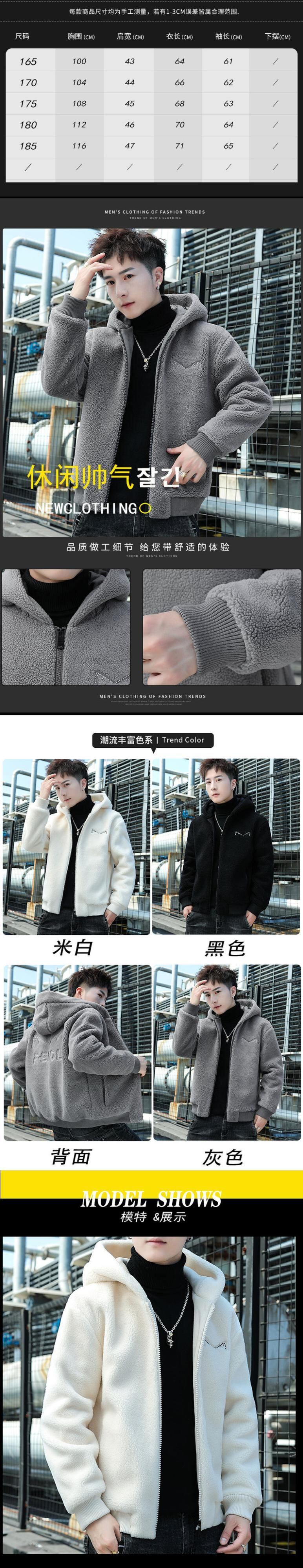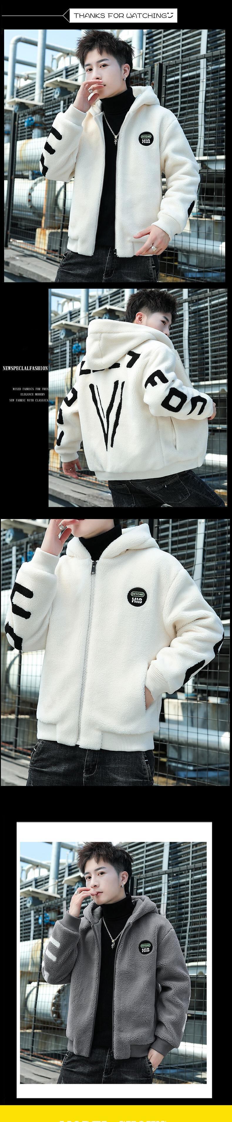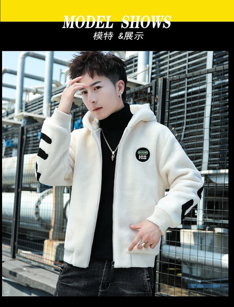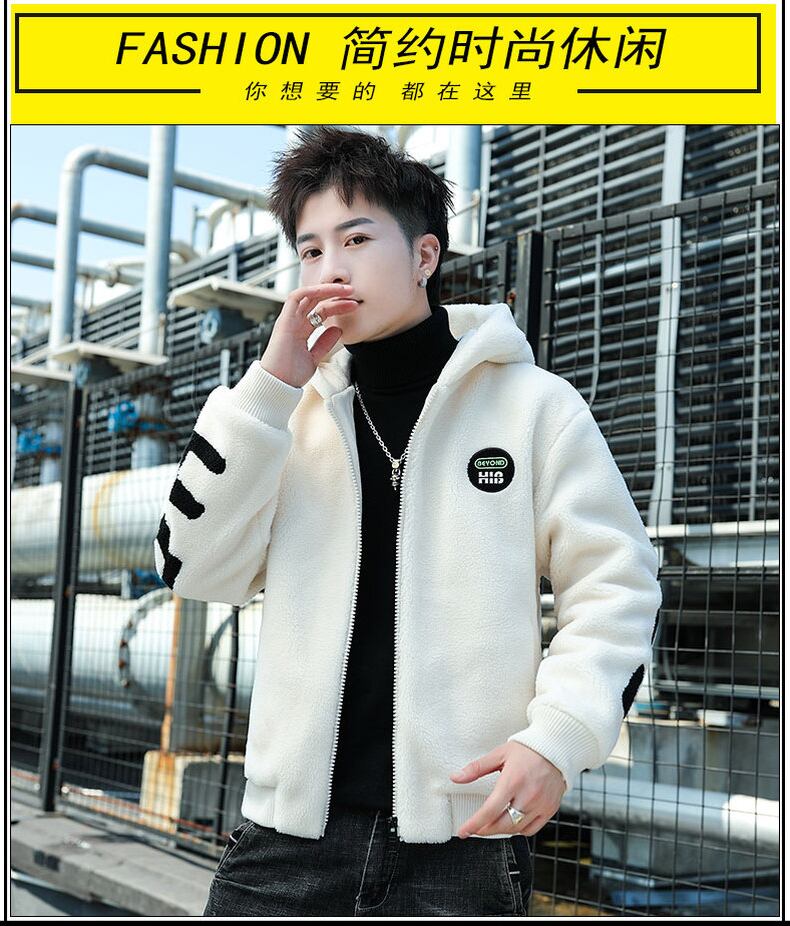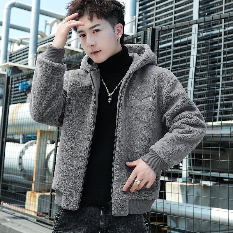 Lamb wool coat men's hooded thick winter cotton clothes version trendy ruffian handsome plush cotton jacket autumn and winter コットン オータム 秋物 ウィンター 冬物 doushi50530000535