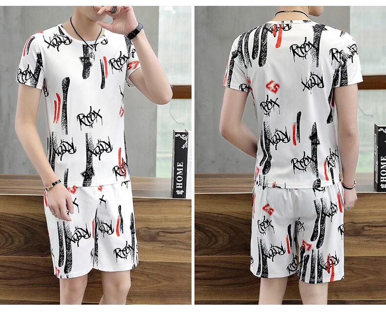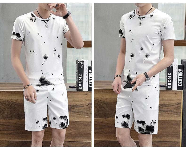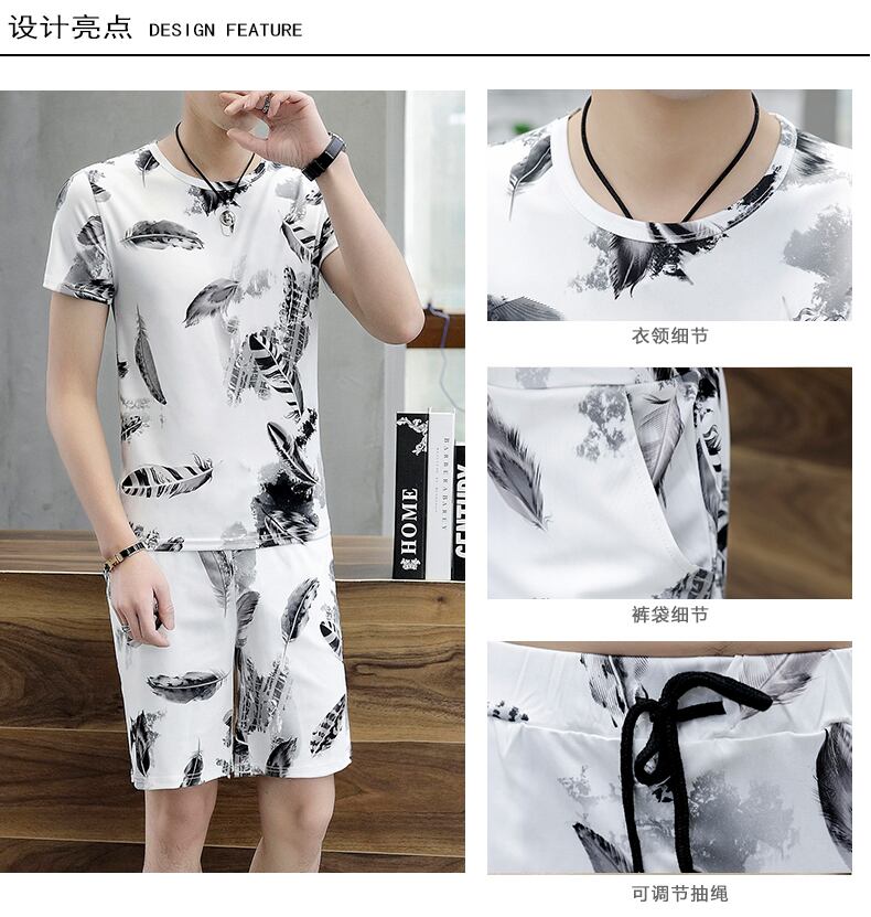 2022 Summer Short Sleeve Men's Suit Slim Trend Two-piece Sportswear One Set of Clothes Men's Clothes ショート 半袖 ハーフスリーブ サマー 夏物 スリム doushi14447026733